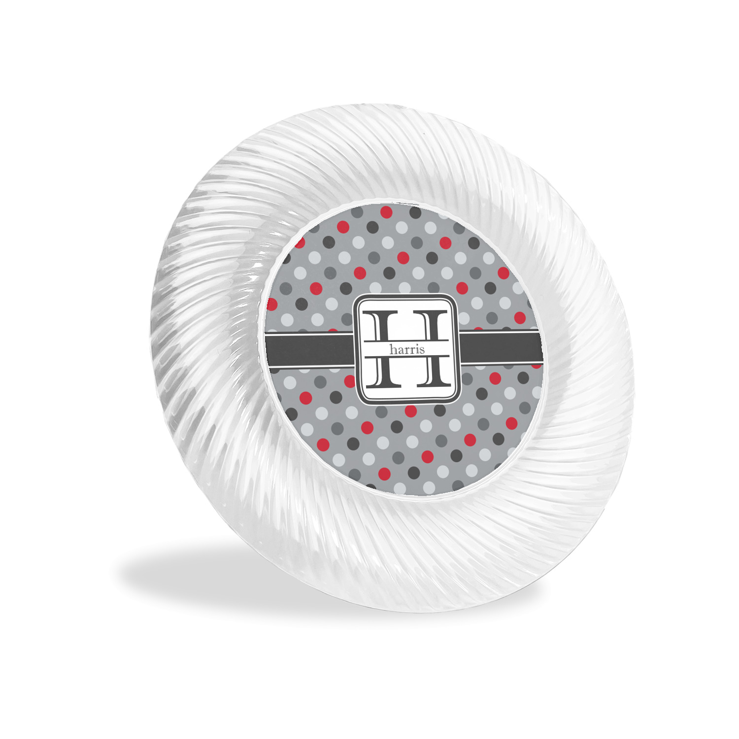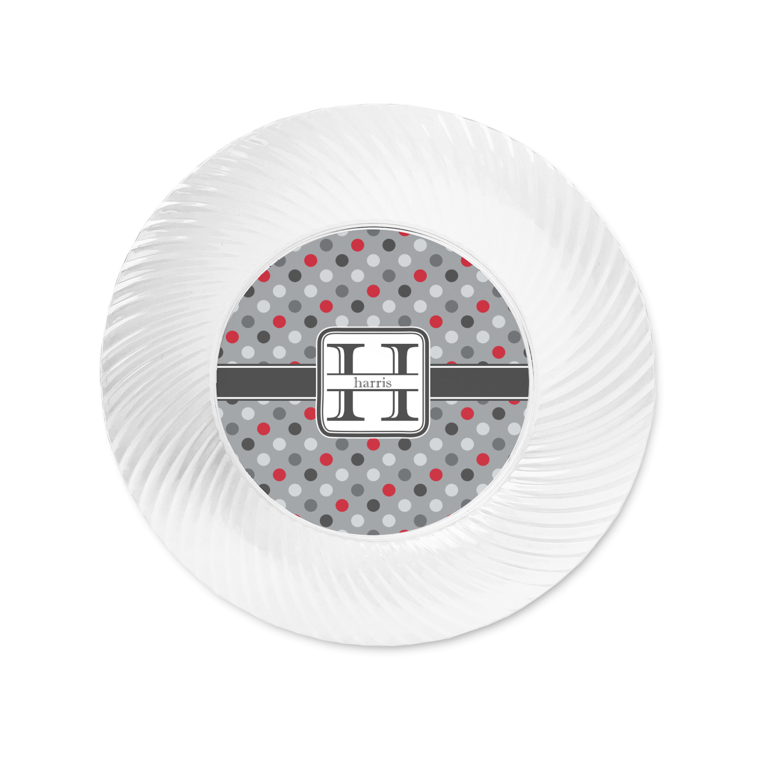 Made from a beautiful clear plastic plate as a base, your design is printed to the underside of the plate. The outside of the plate has a classic swirl texture to it for a high quality look and feel.