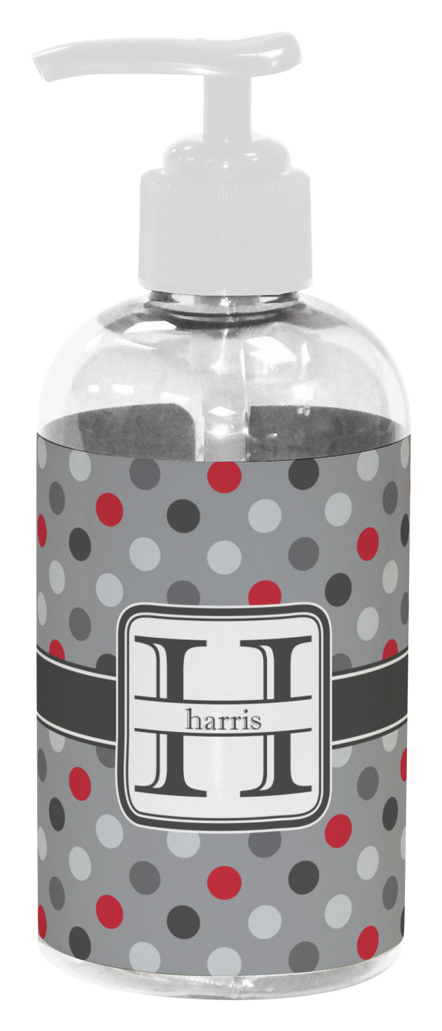 Our bottle dispensers are clear plastic with a black or white nozzle and are available in two sizes - 8 oz (2.25"D x 6"H) and 16 oz (2.5"D x 7"H) and can hold a variety of liquids. The large size (16 oz) is perfect for shampoo, conditioner, body soap / lotion while the smaller size (8 oz) is perfect for hand soap, lotion or face cleanser.