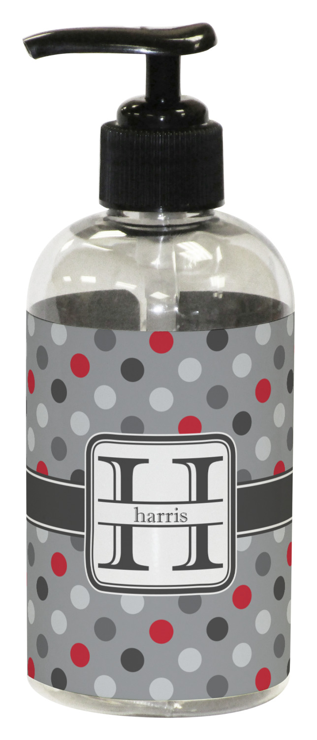 Our bottle dispensers are clear plastic with a black or white nozzle and are available in two sizes - 8 oz (2.25"D x 6"H) and 16 oz (2.5"D x 7"H) and can hold a variety of liquids. The large size (16 oz) is perfect for shampoo, conditioner, body soap / lotion while the smaller size (8 oz) is perfect for hand soap, lotion or face cleanser.
