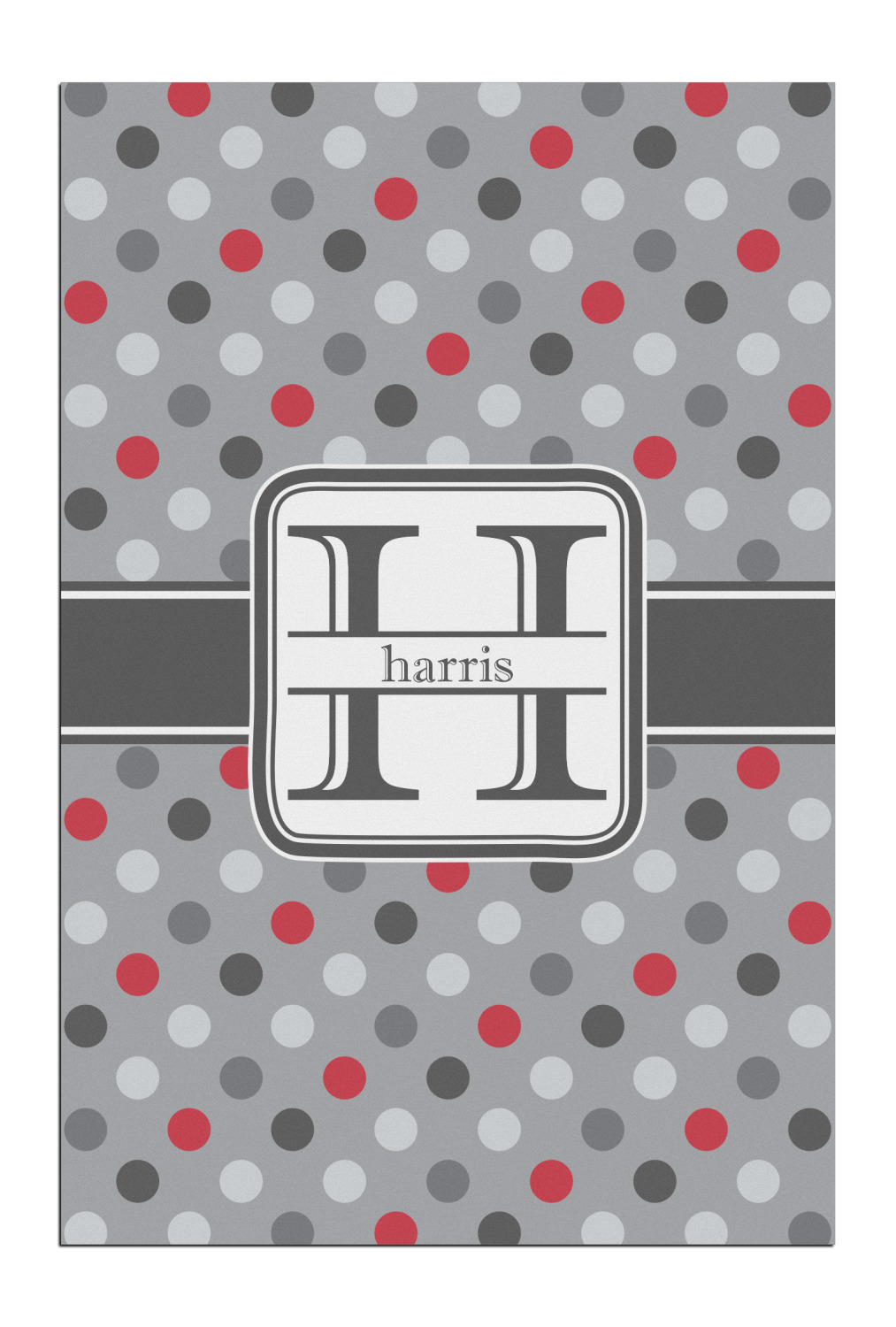 Polka dots have grown up and are not just for kids anymore. We have taken a pattern that is normally for children and by adding a modern color scheme have created a very versatile design that can be used for both adults and children. The polka dot design is set on a background of medium gray. Using coordinating colors of different shades of gray and red creates a very modern take on the timeless polka dot pattern.