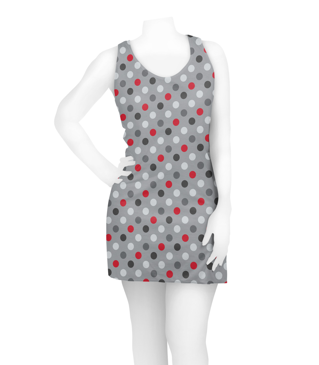 Polka dots have grown up and are not just for kids anymore. We have taken a pattern that is normally for children and by adding a modern color scheme have created a very versatile design that can be used for both adults and children. The polka dot design is set on a background of medium gray. Using coordinating colors of different shades of gray and red creates a very modern take on the timeless polka dot pattern.