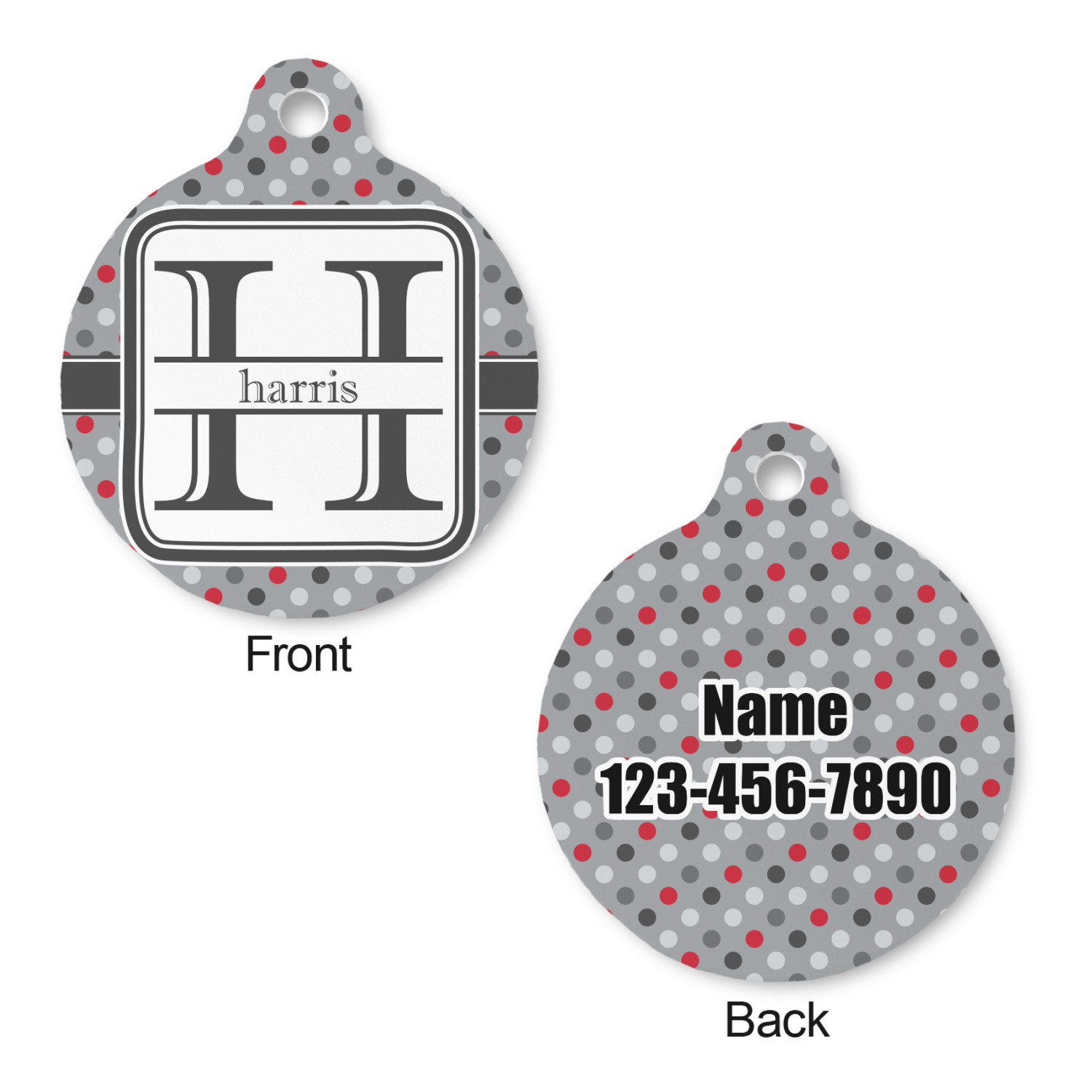 Go ahead; skip the monotony of plain pet ID tags with your very own, customized & personalized, round pet tag! This pet ID tag, fitting for both cats and dogs, will catch the eye of any onlooker (humans, canines, and felines, alike!) and accentuate your pet's individual personality.