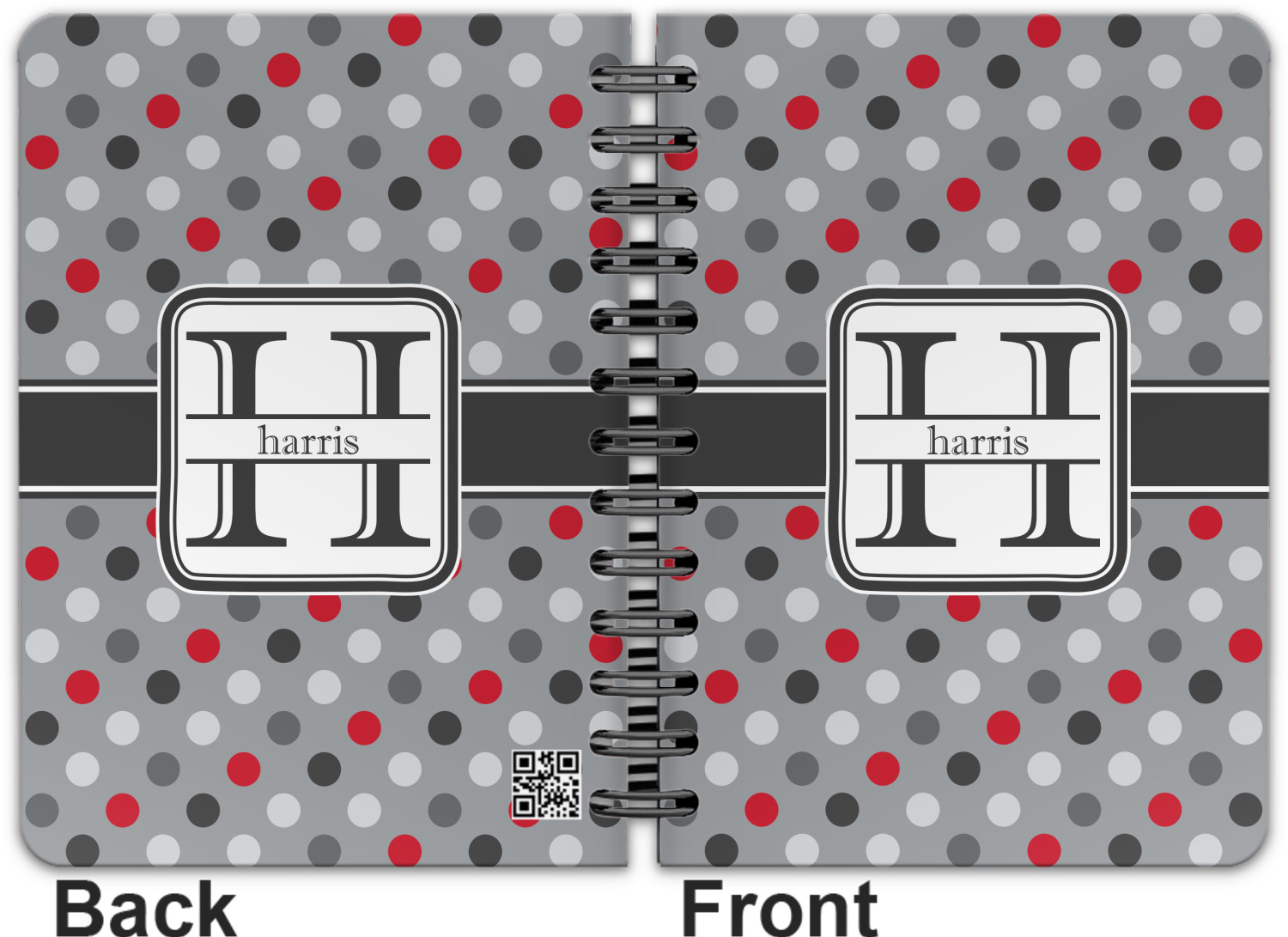 This spiral notebook includes 75 sheets of thick, ruled paper. The front and back of this custom notebook is made of a robust, laminate, plastic covering. We print your personalization on these two panels, underneath a glossy finish, which emphasizes the colors of your design. The two panels and the sheets of paper are held together by a sturdy, black coil. The paper within your bound notebook is perforated for easy, clean tearing.