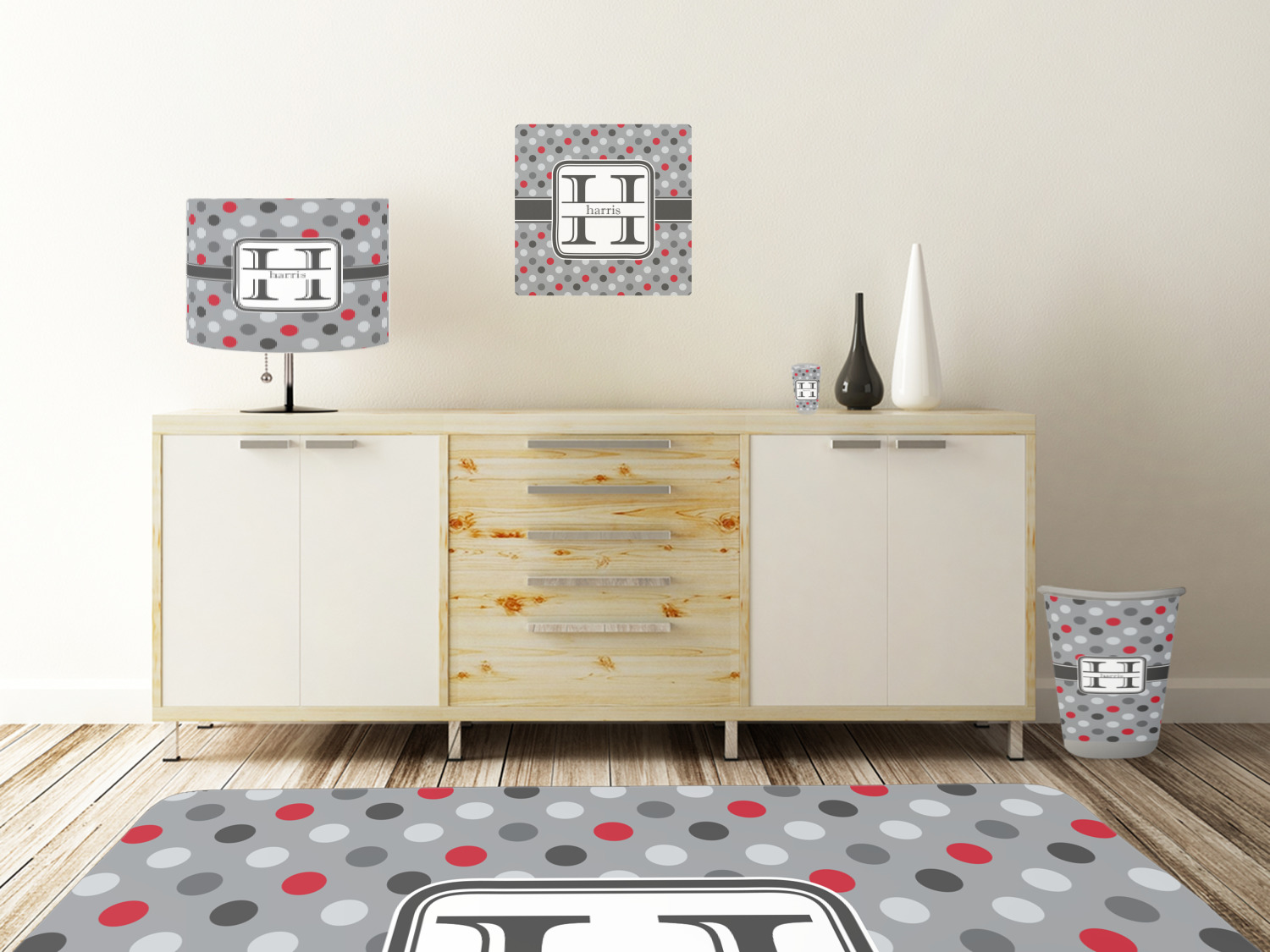 Polka dots have grown up and are not just for kids anymore. We have taken a pattern that is normally for children and by adding a modern color scheme have created a very versatile design that can be used for both adults and children. The polka dot design is set on a background of medium gray. Using coordinating colors of different shades of gray and red creates a very modern take on the timeless polka dot pattern.