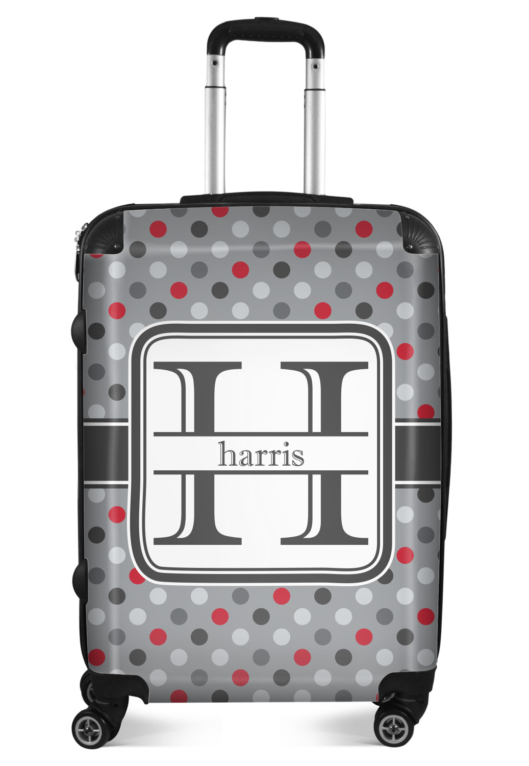 Polka dots have grown up and are not just for kids anymore. We have taken a pattern that is normally for children and by adding a modern color scheme have created a very versatile design that can be used for both adults and children. The polka dot design is set on a background of medium gray. Using coordinating colors of different shades of gray and red creates a very modern take on the timeless polka dot pattern.