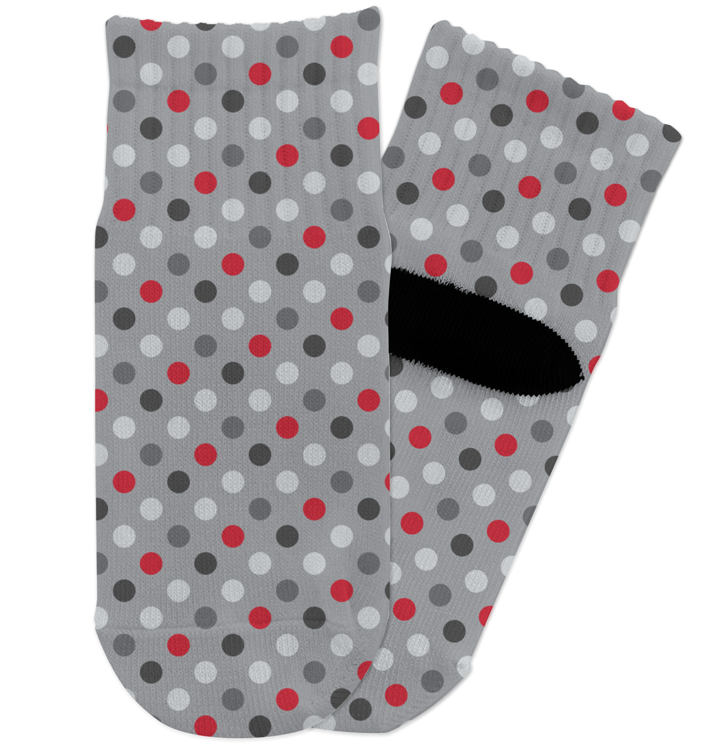 Polka dots have grown up and are not just for kids anymore. We have taken a pattern that is normally for children and by adding a modern color scheme have created a very versatile design that can be used for both adults and children. The polka dot design is set on a background of medium gray. Using coordinating colors of different shades of gray and red creates a very modern take on the timeless polka dot pattern.