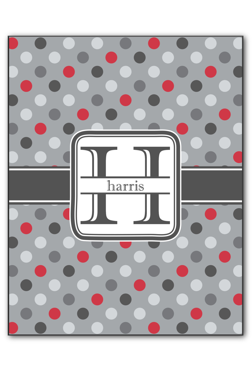 Polka dots have grown up and are not just for kids anymore. We have taken a pattern that is normally for children and by adding a modern color scheme have created a very versatile design that can be used for both adults and children. The polka dot design is set on a background of medium gray. Using coordinating colors of different shades of gray and red creates a very modern take on the timeless polka dot pattern.
