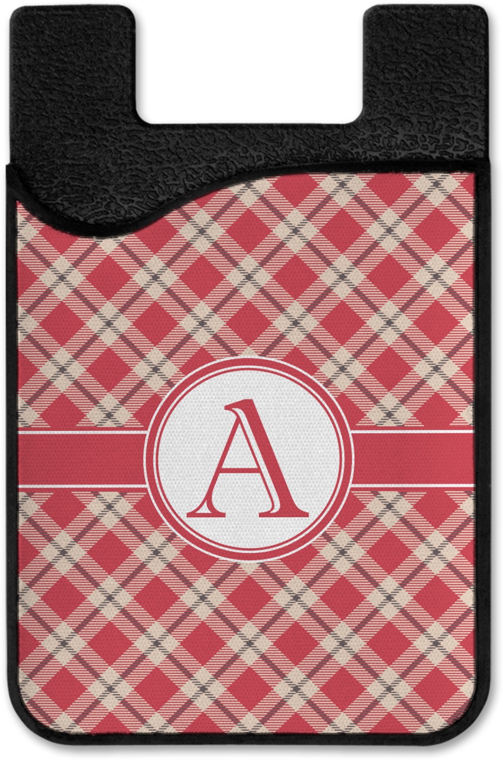 For our design, we chose a simple plaid; we chose red & tan to create a unisex palette and used dark grey for our accent color. We also chose the classic ribbon and round label with an elegant initial for our very simple, yet elegant personalization.
