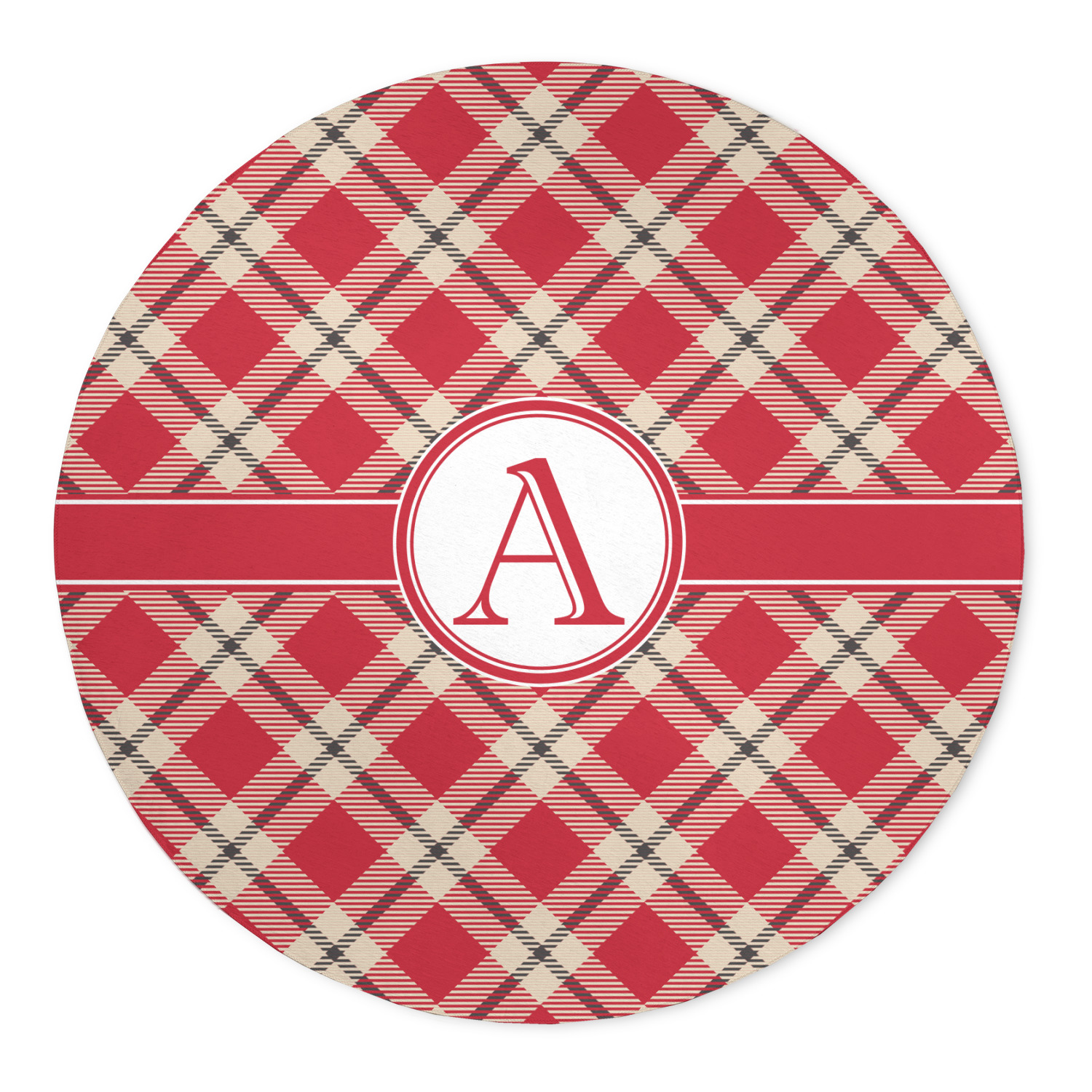 For our design, we chose a simple plaid; we chose red & tan to create a unisex palette and used dark grey for our accent color. We also chose the classic ribbon and round label with an elegant initial for our very simple, yet elegant personalization.