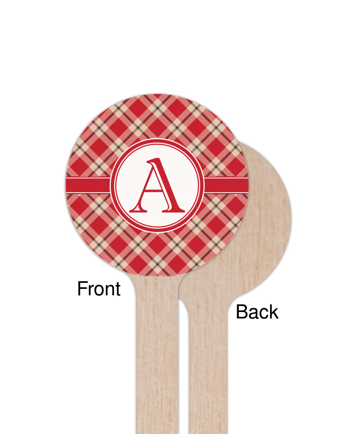 For our design, we chose a simple plaid; we chose red & tan to create a unisex palette and used dark grey for our accent color. We also chose the classic ribbon and round label with an elegant initial for our very simple, yet elegant personalization.