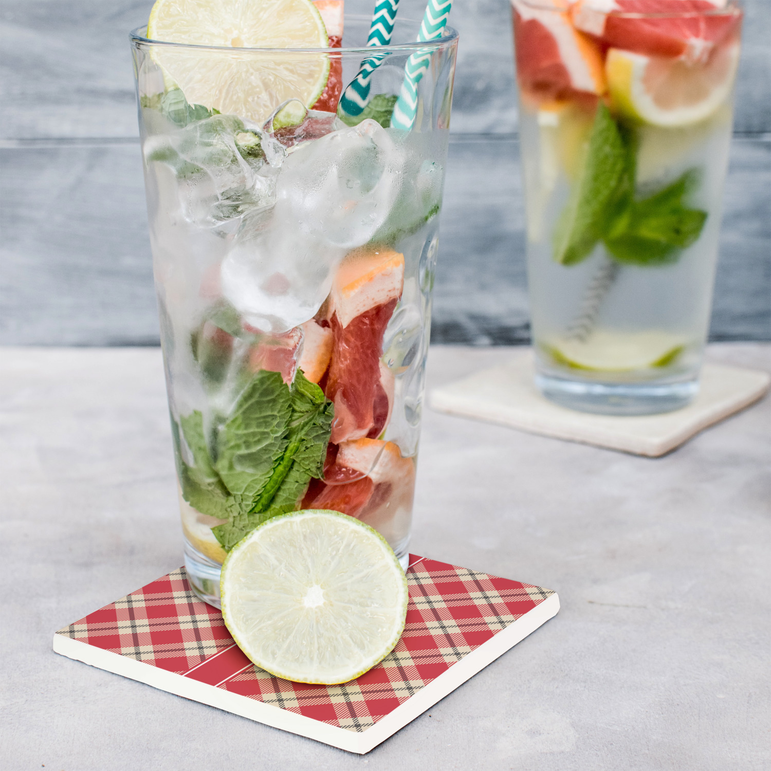 Our super absorbent stone coasters absorb the condensation into the coaster, before it has a chance to flow on to your furniture or table tops, thus preventing watermarks and blemishes.