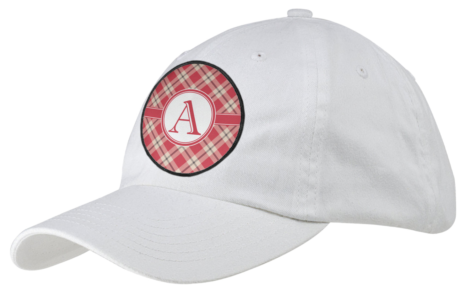 For our design, we chose a simple plaid; we chose red & tan to create a unisex palette and used dark grey for our accent color. We also chose the classic ribbon and round label with an elegant initial for our very simple, yet elegant personalization.
