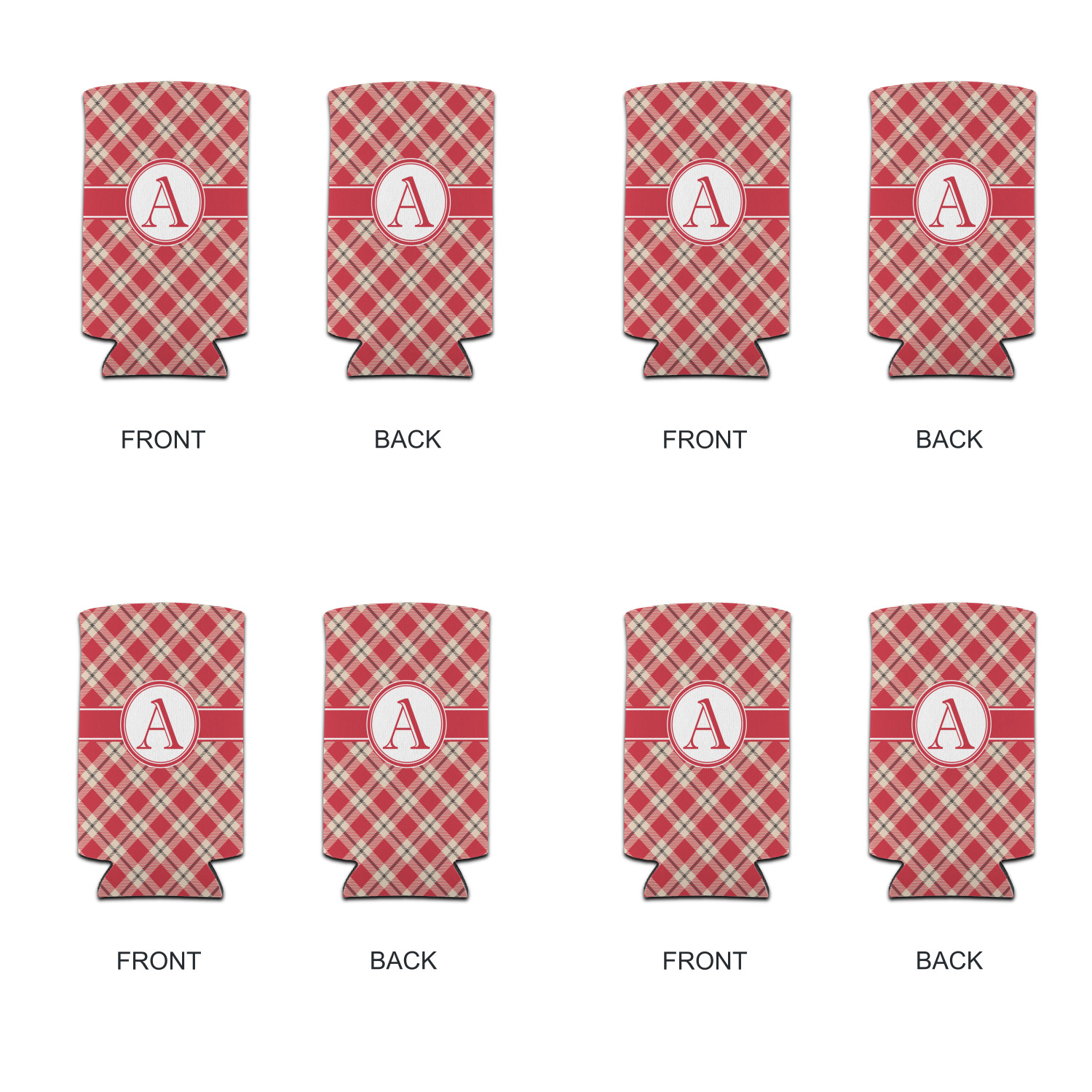 For our design, we chose a simple plaid; we chose red & tan to create a unisex palette and used dark grey for our accent color. We also chose the classic ribbon and round label with an elegant initial for our very simple, yet elegant personalization.