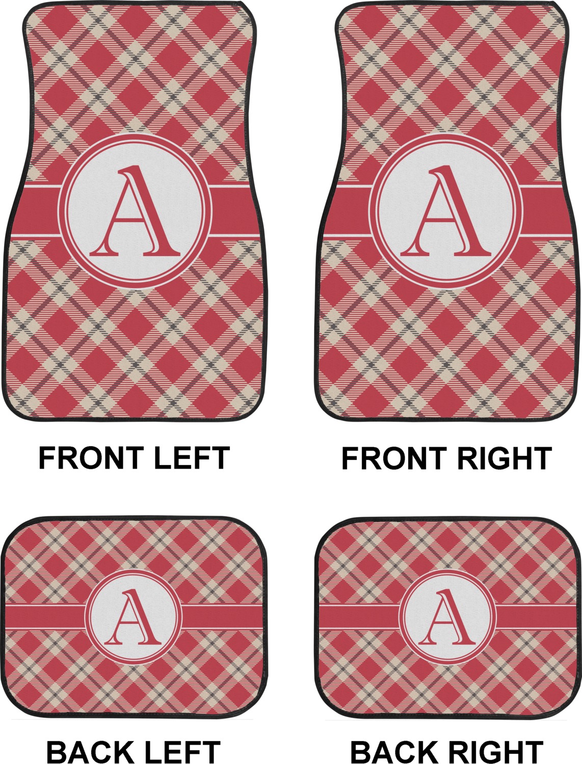 We craft our auto floor mats mats from polyester, apply a black finish to the edges, and lined at the bottom to prevent slippage. These mats protect your floors from grass, mud, and any accidental spills. We display your personalized design on the front face of each mat. The sizes of these car floor liners are standardized to provide a versatile fit for all vehicles. The front rows car mats measure at 17 by 26.5 inches, while the back rows measure at 17 by 13 inches. We sell three packages of car floor mats. You can purchase a pair of front row car mats, a pair of back row car mats, or a set of front row and back row car mats. To make an informed purchase, we recommend measuring the surface area of your car floors.