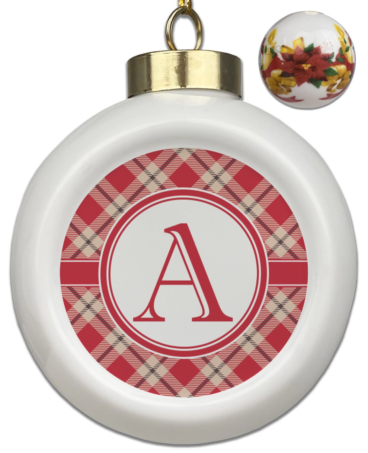 Our Christmas ornaments are a unique ceramic ball shape with a twist as it has a flat face to display your custom design! Select from one of our two design types - Christmas Tree or Poinsettia Garland - to adorn the curved back of your personal design. Each ornament measures 3H x 2.5W x 2D accompanied with a gold string accent for finishing touches to hang on your beautiful Christmas tree!