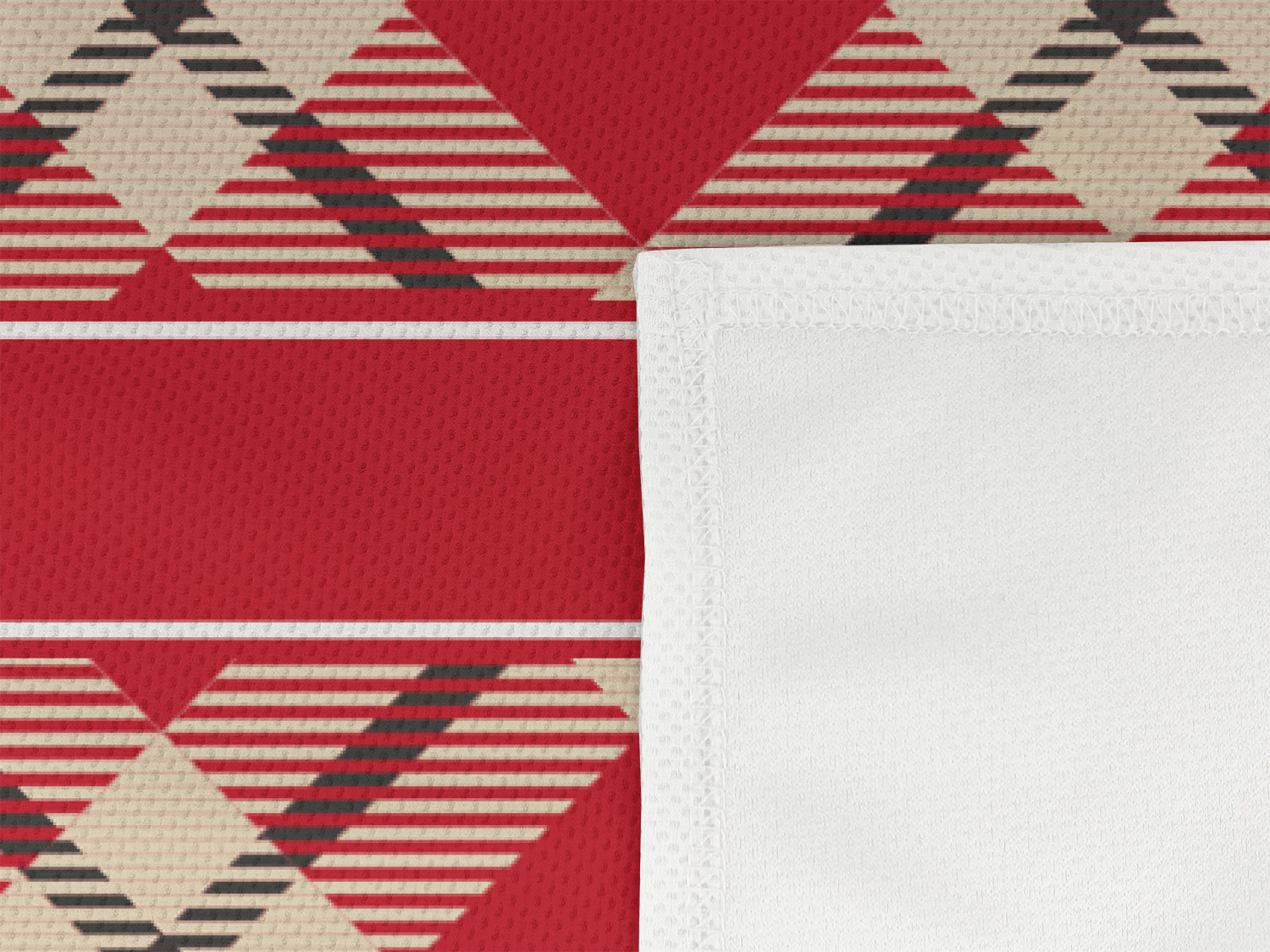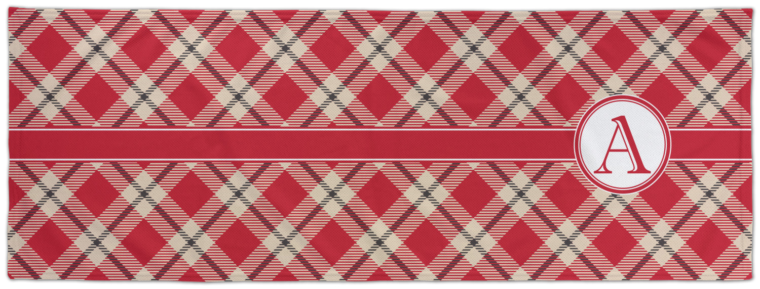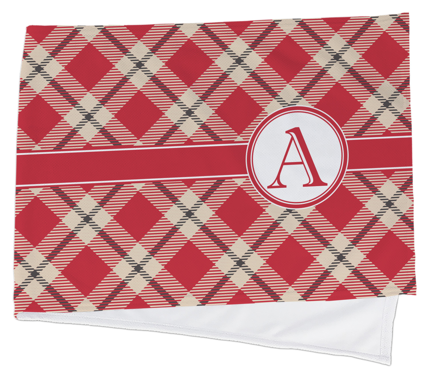 For our design, we chose a simple plaid; we chose red & tan to create a unisex palette and used dark grey for our accent color. We also chose the classic ribbon and round label with an elegant initial for our very simple, yet elegant personalization.