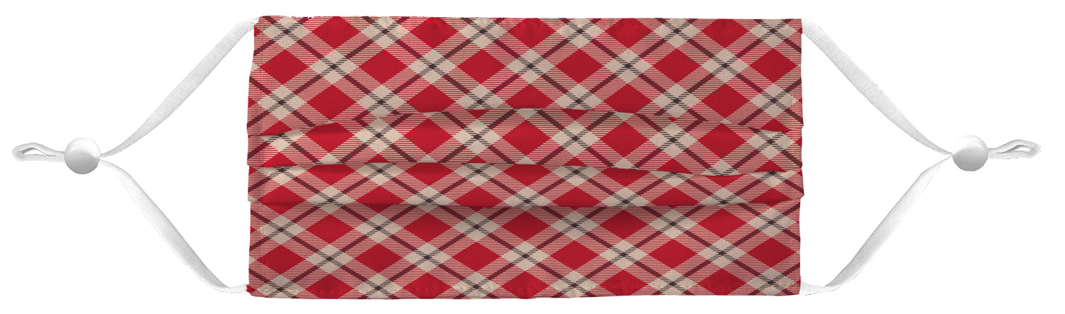 These fun face masks are 7" wide and 3.5" high. They feature pleats, adjustable ear loops, and are made with two layers of fabric. The top layer where your design is printed is a breathable polyester sheeting, while the inside layer is a soft microfiber polyester