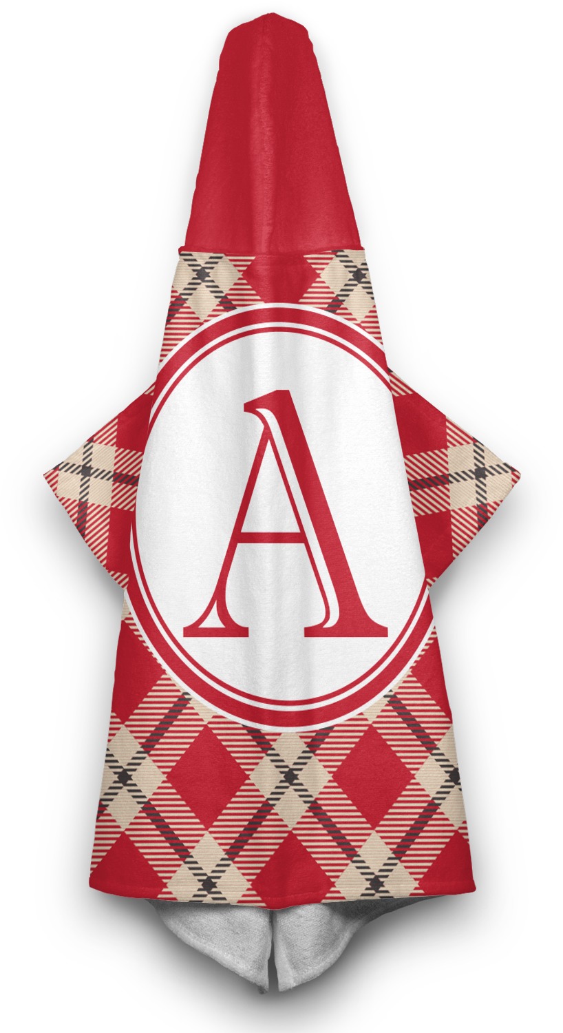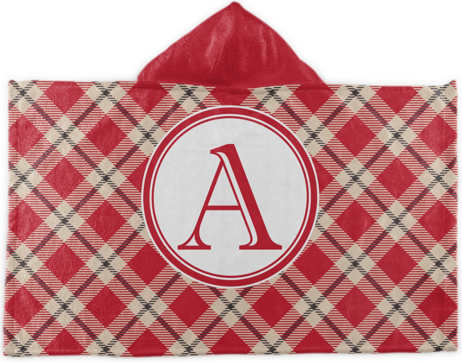 For our design, we chose a simple plaid; we chose red & tan to create a unisex palette and used dark grey for our accent color. We also chose the classic ribbon and round label with an elegant initial for our very simple, yet elegant personalization.