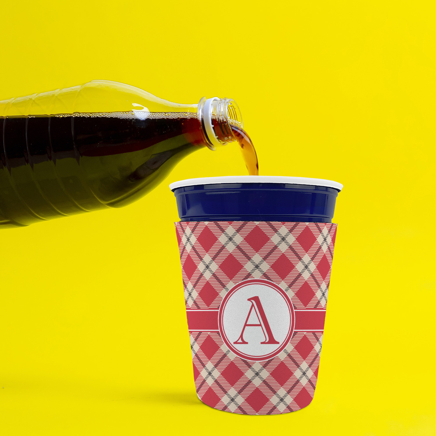 Made from neoprene with a polyester outer fabric and sewn seams, these premium quality party cup sleeves are very durable and will hold up to heavy use. They are available in 2 styles - with a bottom or just a sleeve to go around the outside of the tapered cup. The sleeve covers are about 4" tall and cover about 90% of the classic 16 oz. Solo cup.