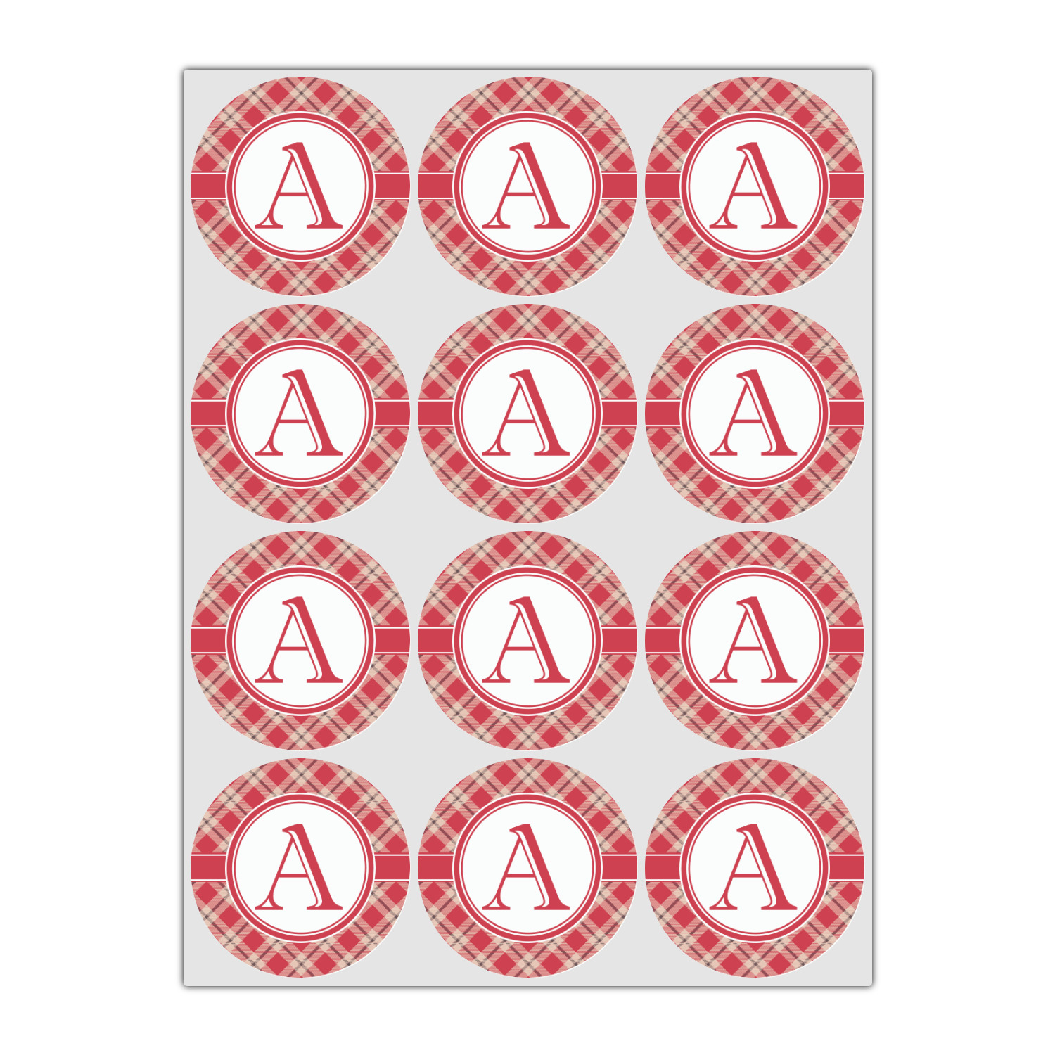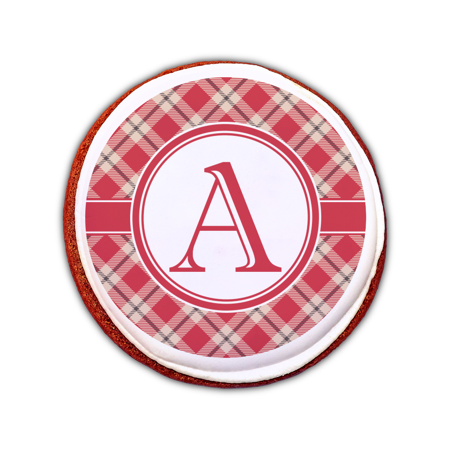 For our design, we chose a simple plaid; we chose red & tan to create a unisex palette and used dark grey for our accent color. We also chose the classic ribbon and round label with an elegant initial for our very simple, yet elegant personalization.