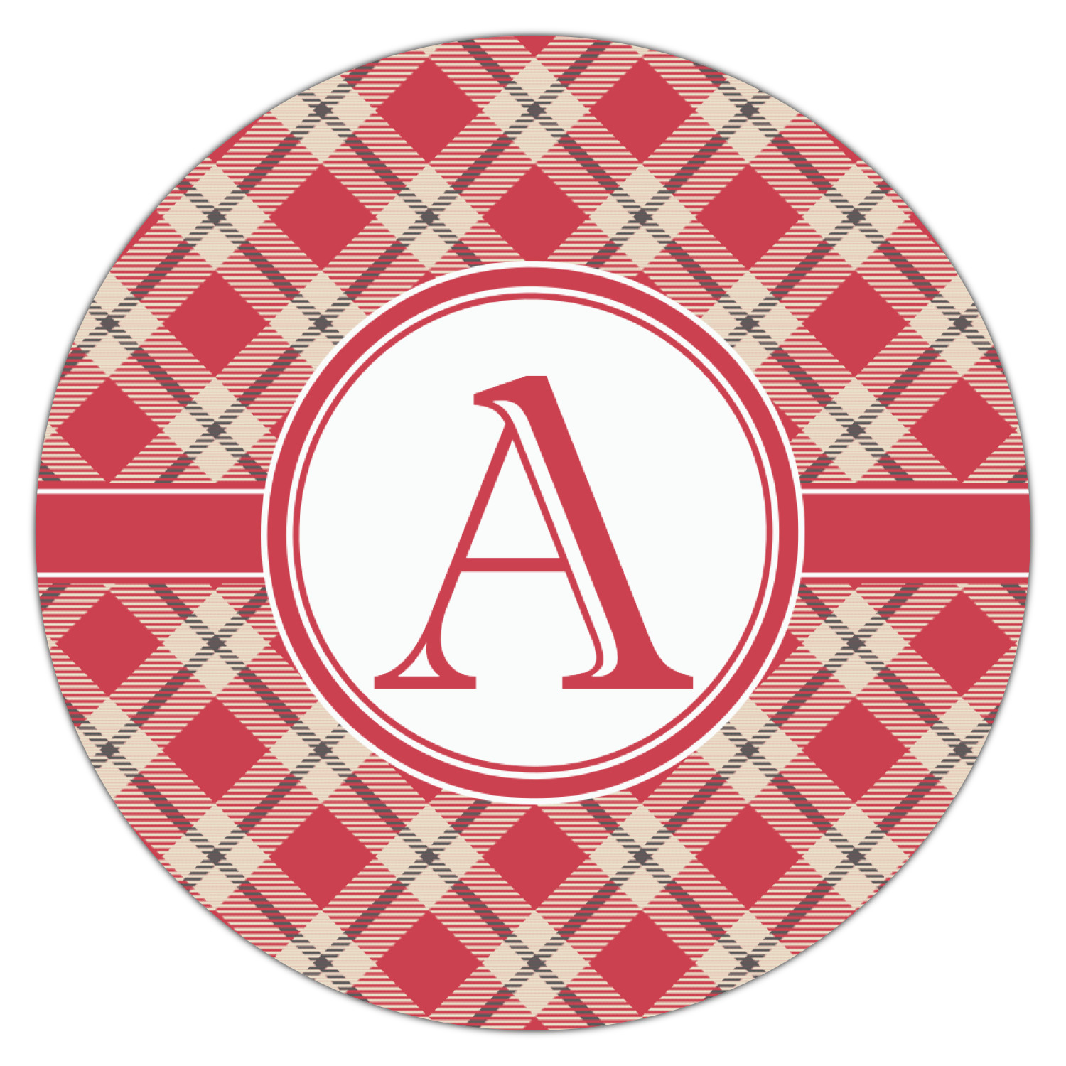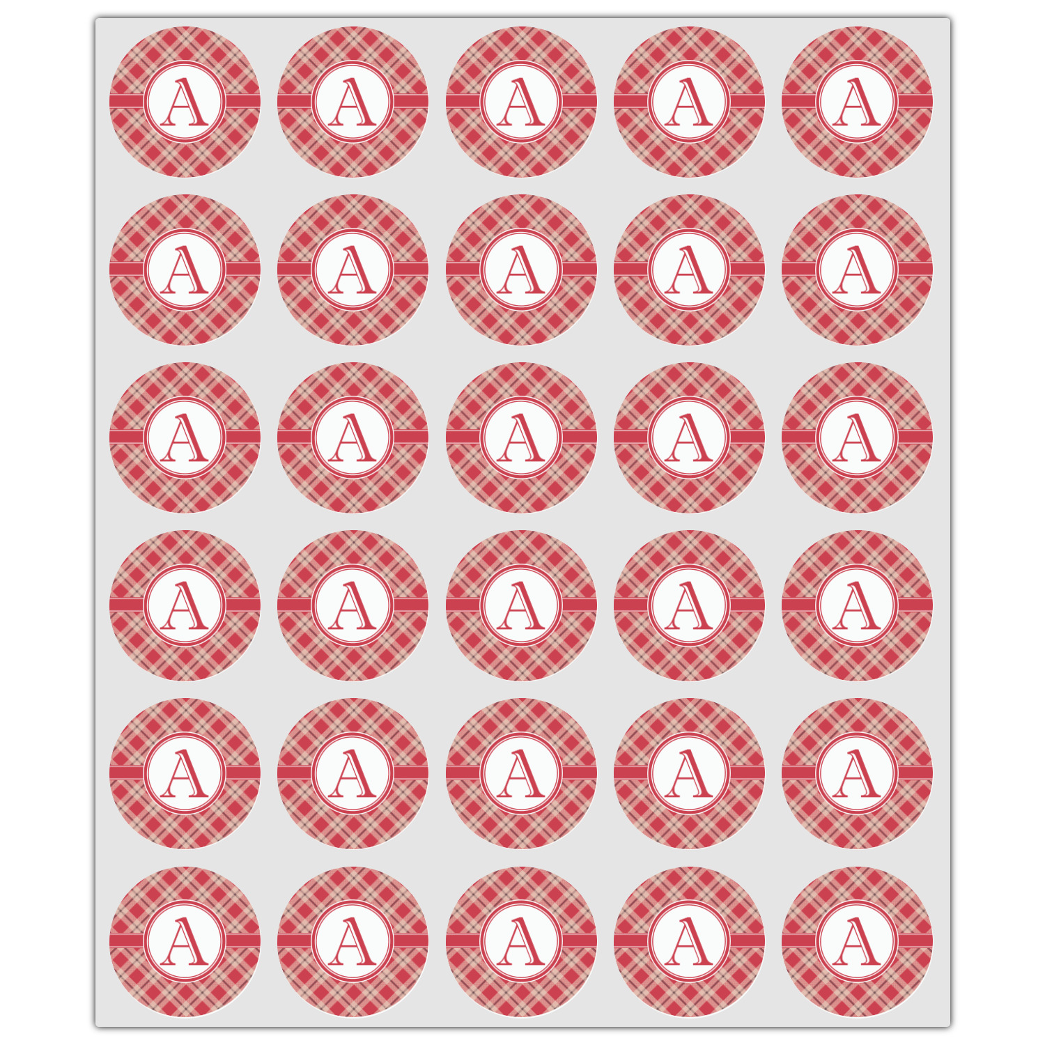 For our design, we chose a simple plaid; we chose red & tan to create a unisex palette and used dark grey for our accent color. We also chose the classic ribbon and round label with an elegant initial for our very simple, yet elegant personalization.