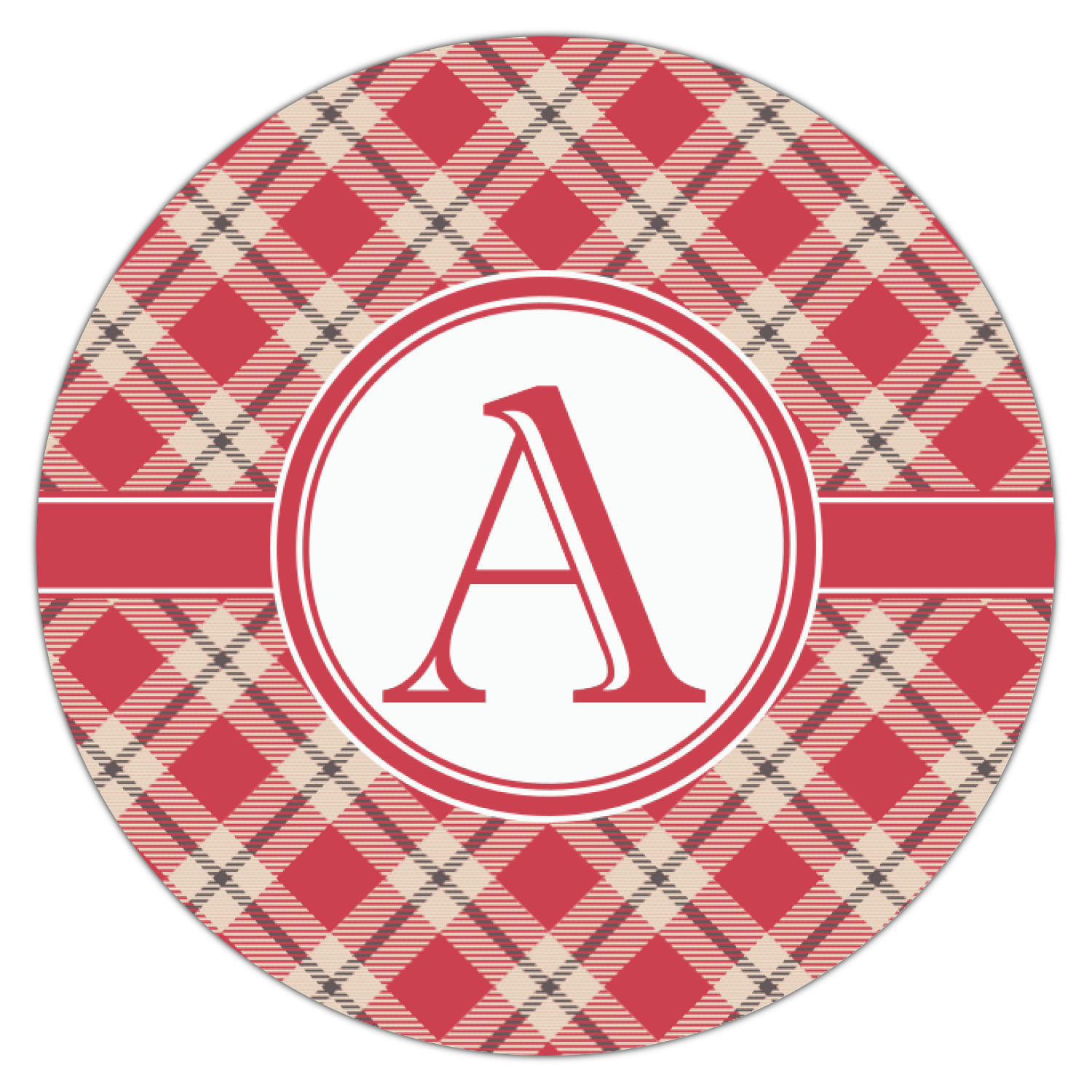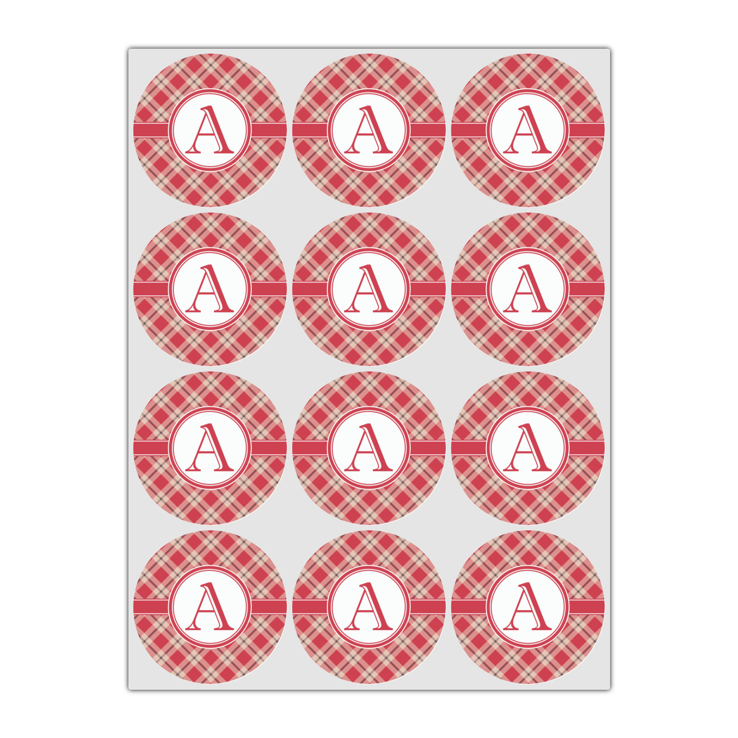 For our design, we chose a simple plaid; we chose red & tan to create a unisex palette and used dark grey for our accent color. We also chose the classic ribbon and round label with an elegant initial for our very simple, yet elegant personalization.