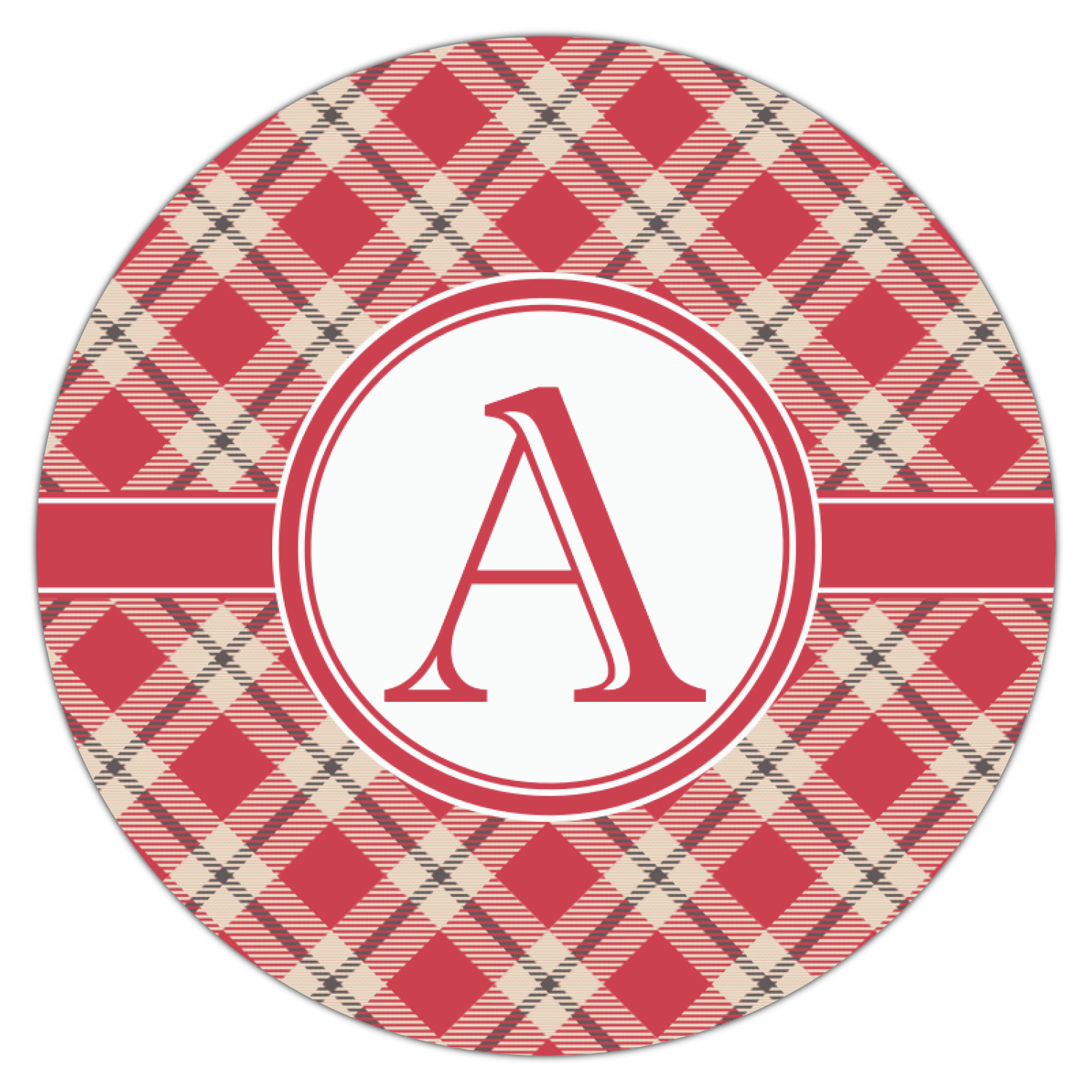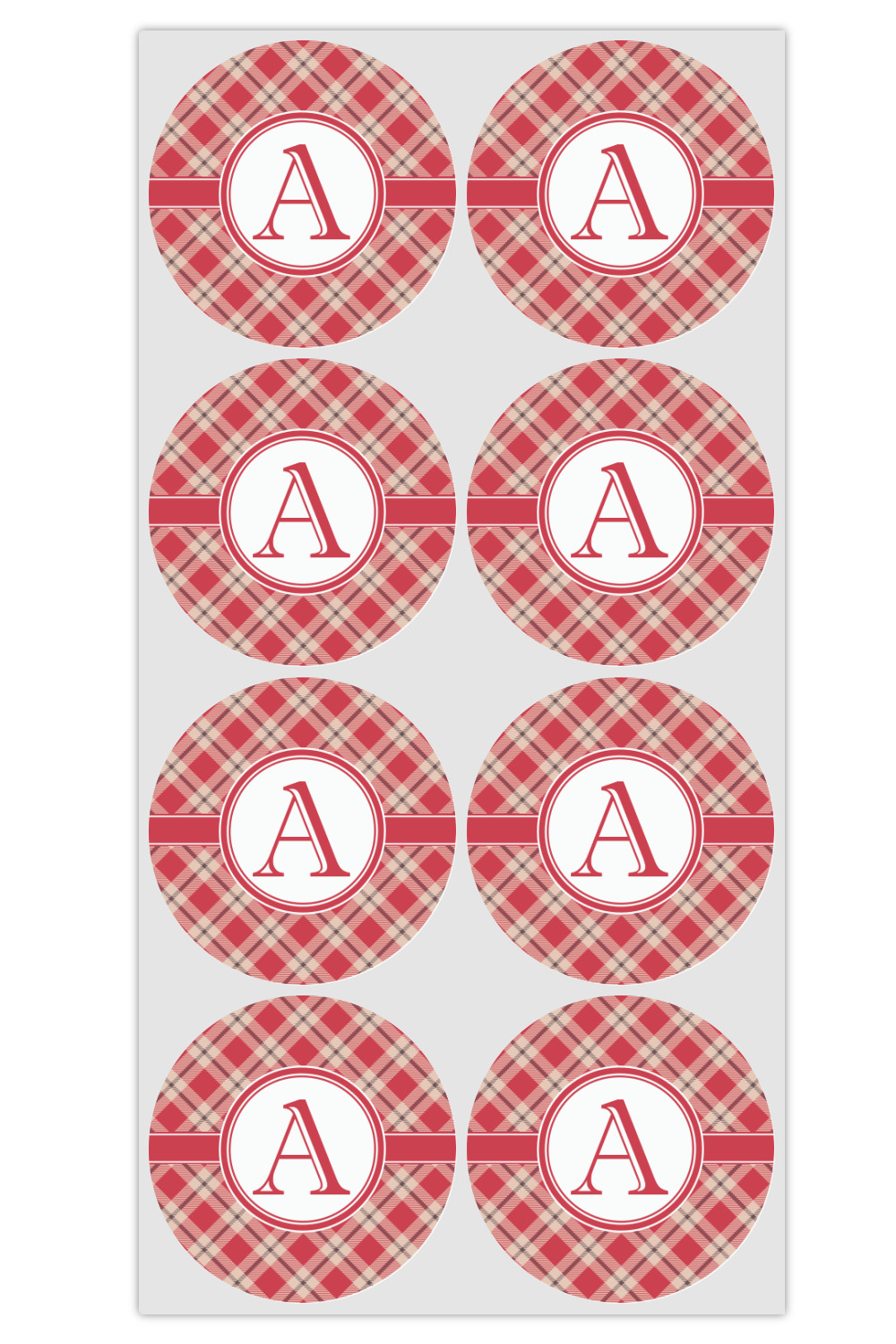 For our design, we chose a simple plaid; we chose red & tan to create a unisex palette and used dark grey for our accent color. We also chose the classic ribbon and round label with an elegant initial for our very simple, yet elegant personalization.