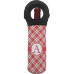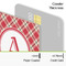 For our design, we chose a simple plaid; we chose red & tan to create a unisex palette and used dark grey for our accent color. We also chose the classic ribbon and round label with an elegant initial for our very simple, yet elegant personalization.