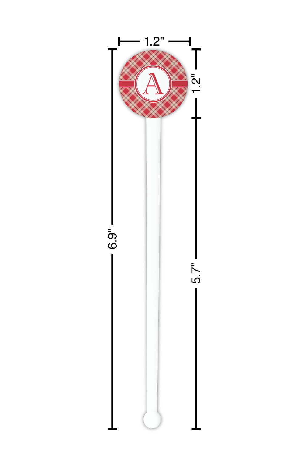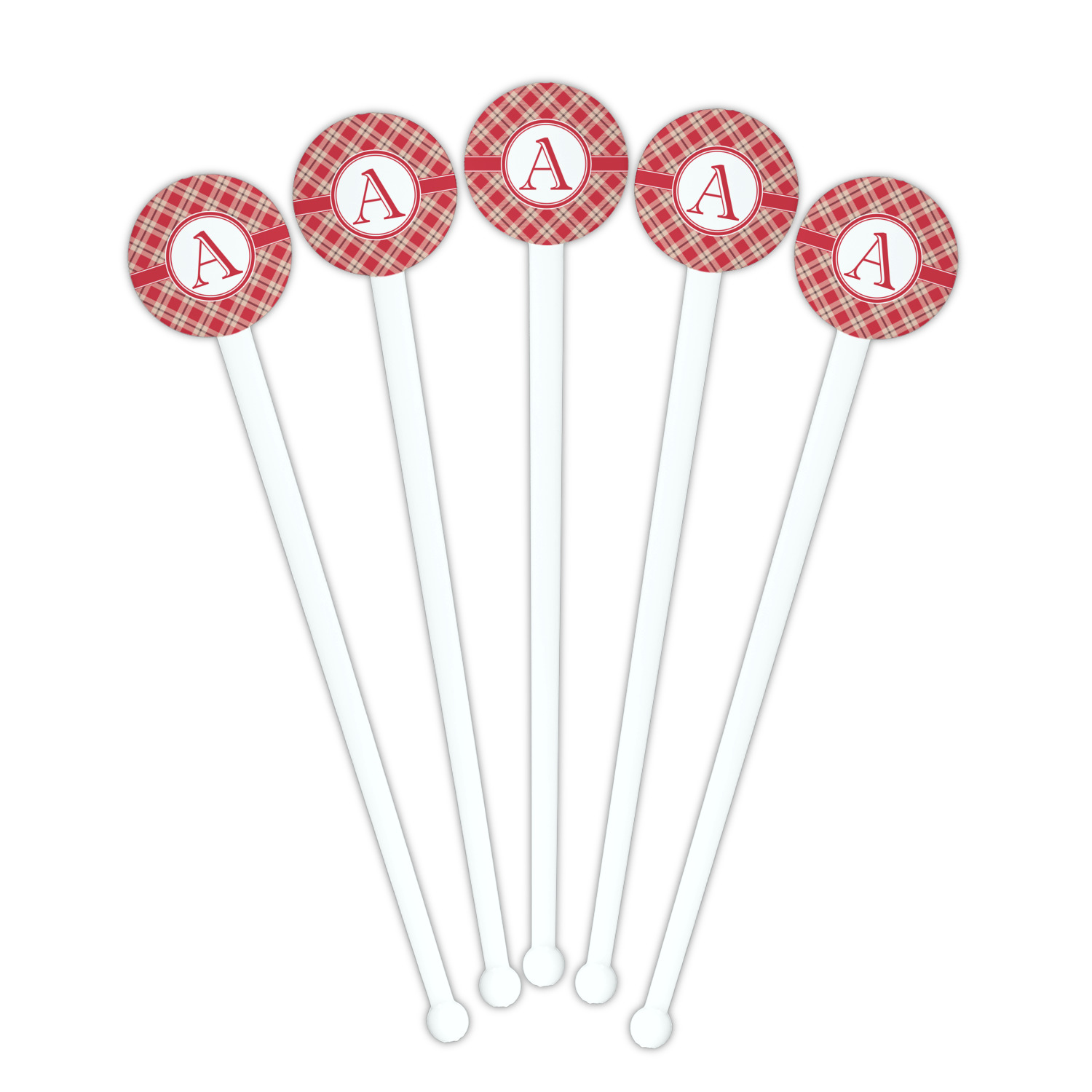 For our design, we chose a simple plaid; we chose red & tan to create a unisex palette and used dark grey for our accent color. We also chose the classic ribbon and round label with an elegant initial for our very simple, yet elegant personalization.