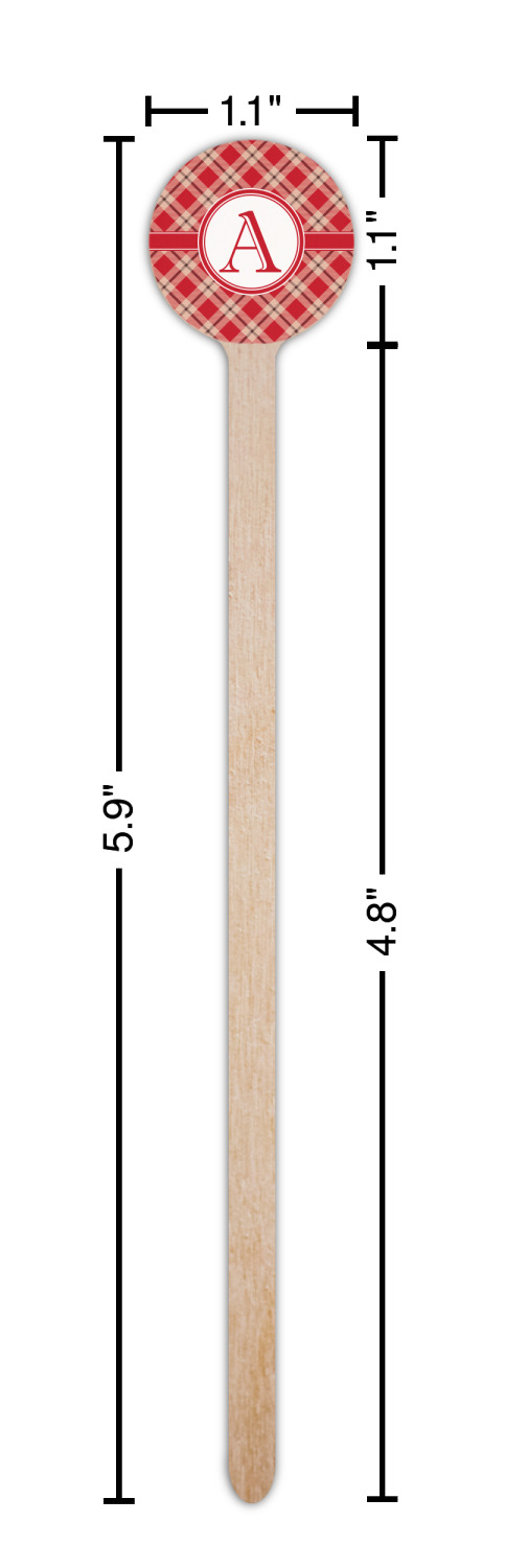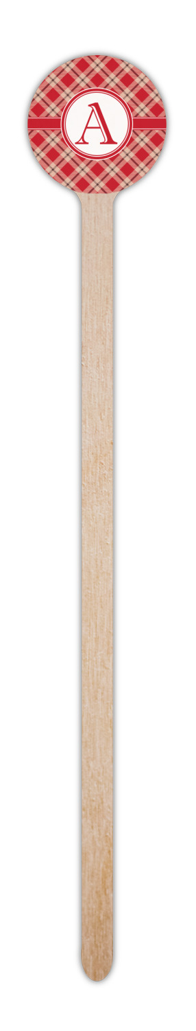 For our design, we chose a simple plaid; we chose red & tan to create a unisex palette and used dark grey for our accent color. We also chose the classic ribbon and round label with an elegant initial for our very simple, yet elegant personalization.