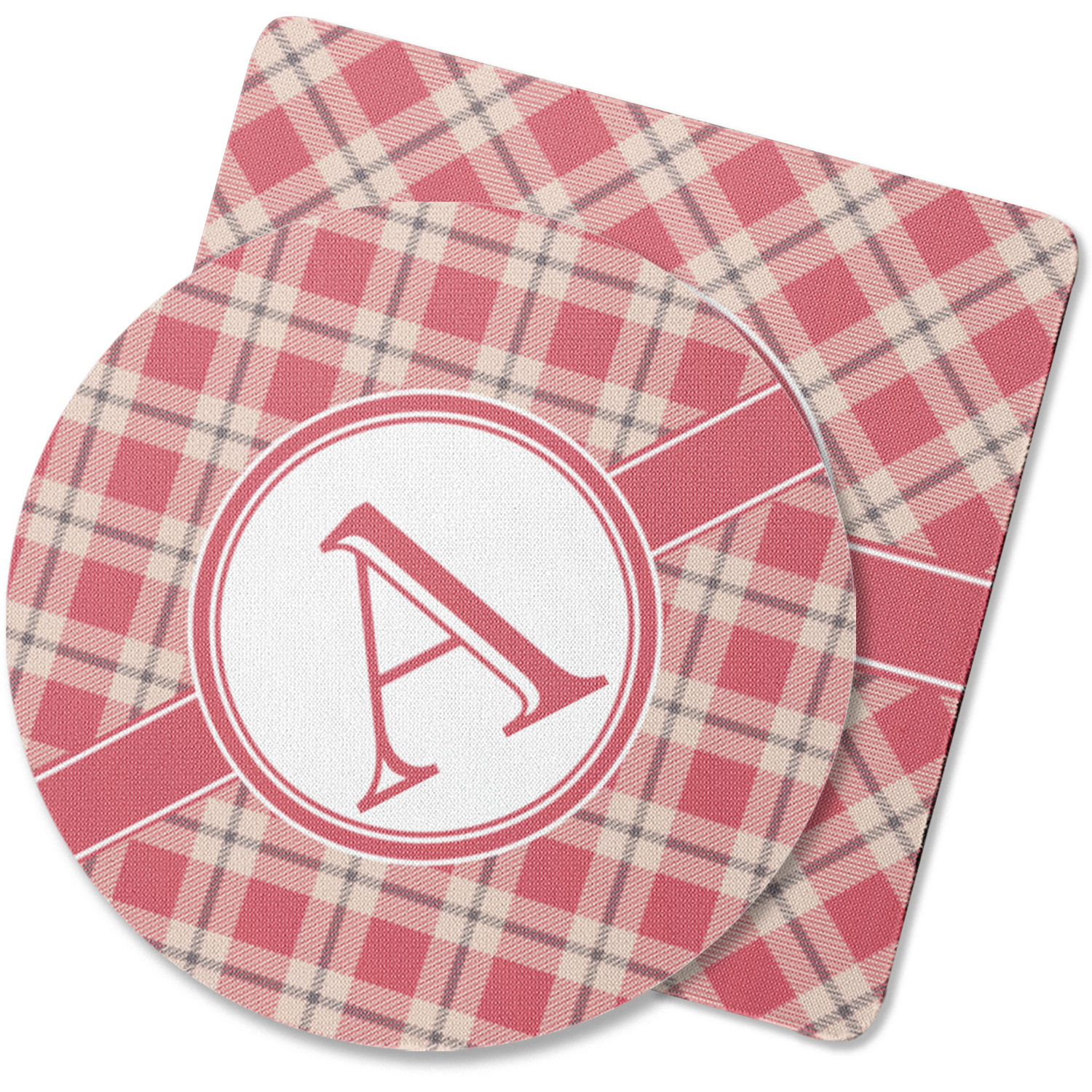 For our design, we chose a simple plaid; we chose red & tan to create a unisex palette and used dark grey for our accent color. We also chose the classic ribbon and round label with an elegant initial for our very simple, yet elegant personalization.