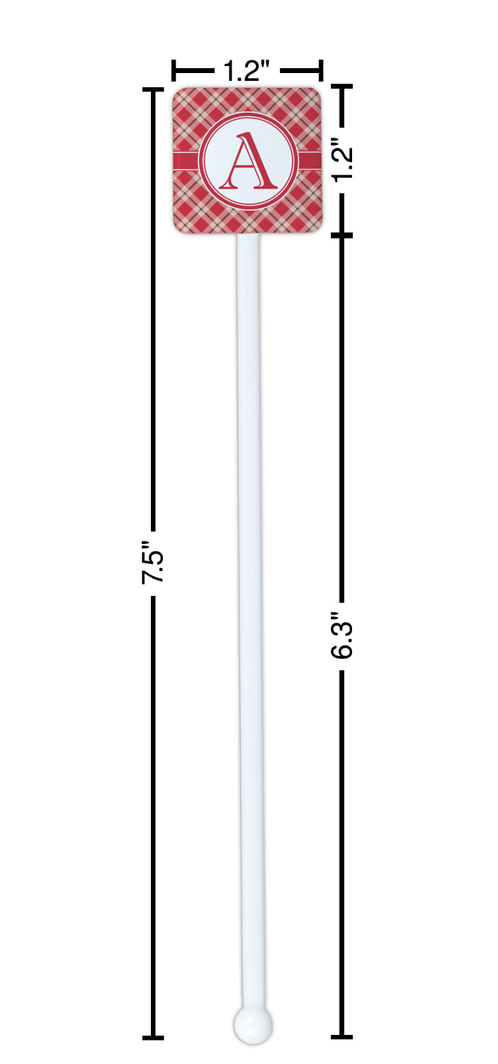 For our design, we chose a simple plaid; we chose red & tan to create a unisex palette and used dark grey for our accent color. We also chose the classic ribbon and round label with an elegant initial for our very simple, yet elegant personalization.