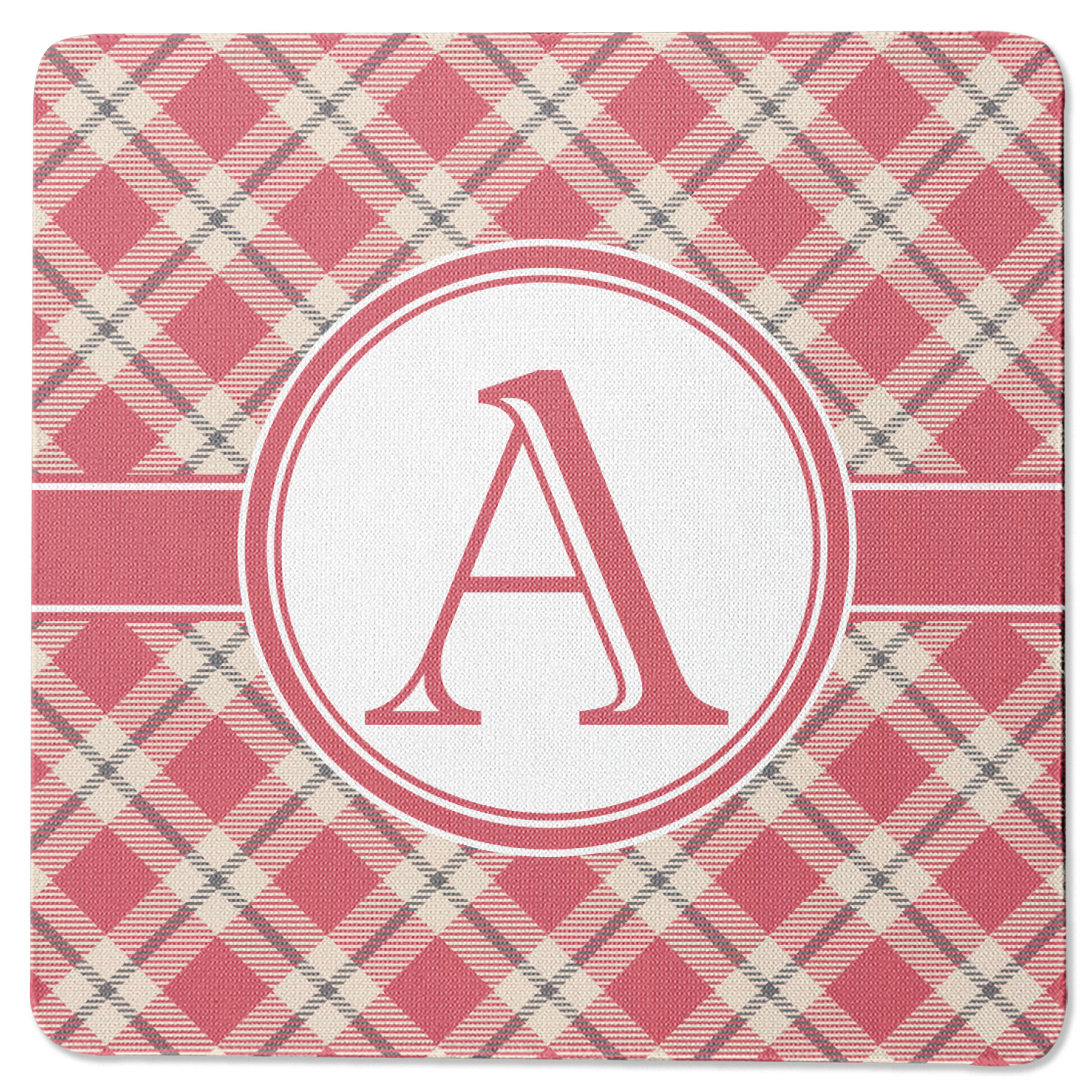 For our design, we chose a simple plaid; we chose red & tan to create a unisex palette and used dark grey for our accent color. We also chose the classic ribbon and round label with an elegant initial for our very simple, yet elegant personalization.