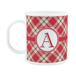 For our design, we chose a simple plaid; we chose red & tan to create a unisex palette and used dark grey for our accent color. We also chose the classic ribbon and round label with an elegant initial for our very simple, yet elegant personalization.