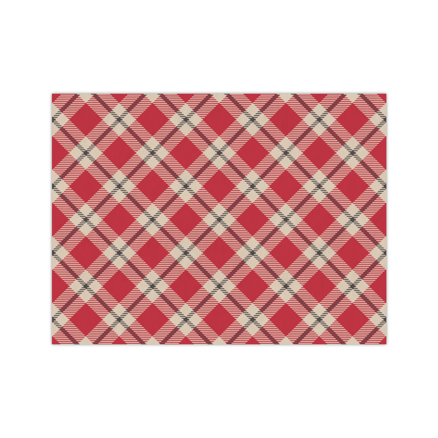 For our design, we chose a simple plaid; we chose red & tan to create a unisex palette and used dark grey for our accent color. We also chose the classic ribbon and round label with an elegant initial for our very simple, yet elegant personalization.