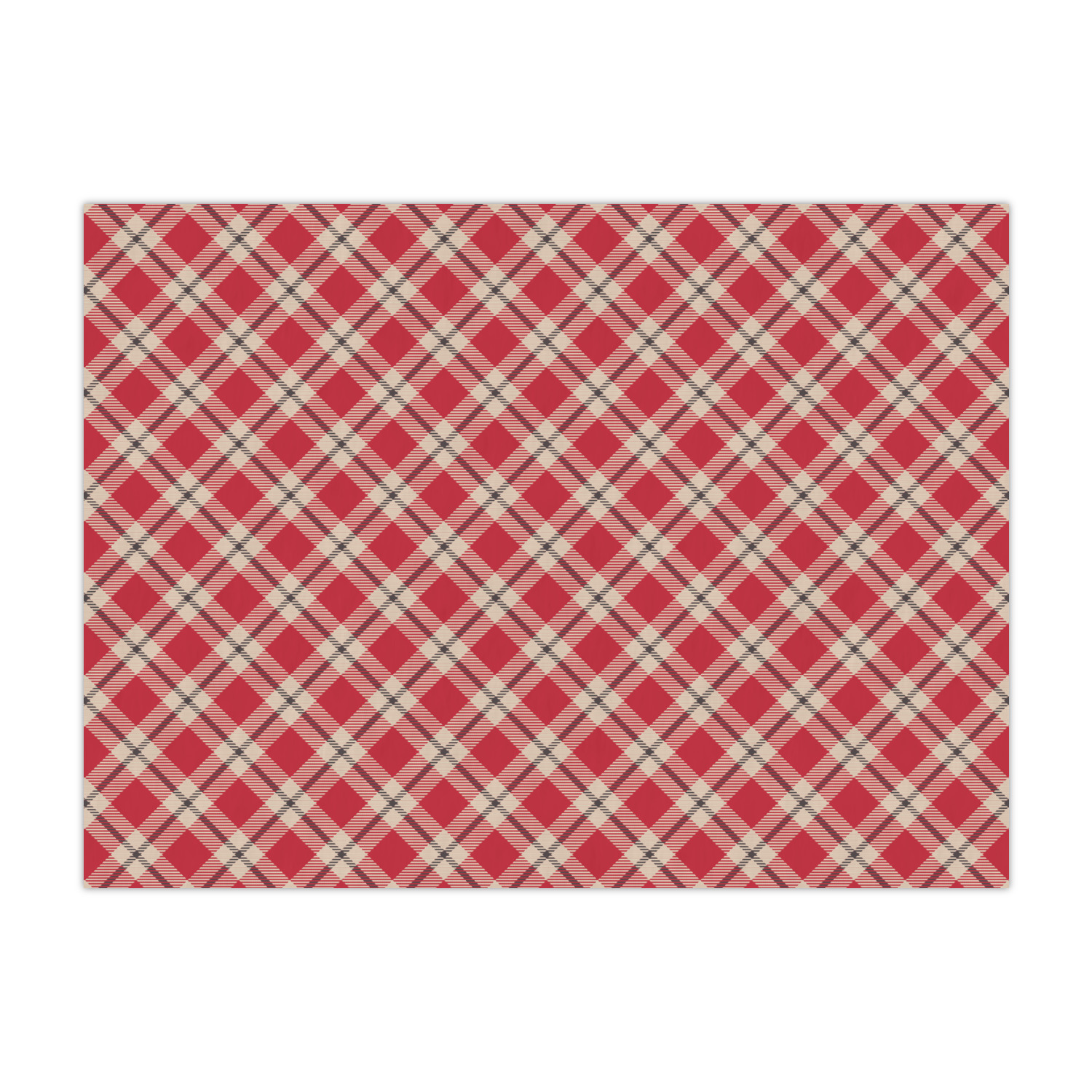 For our design, we chose a simple plaid; we chose red & tan to create a unisex palette and used dark grey for our accent color. We also chose the classic ribbon and round label with an elegant initial for our very simple, yet elegant personalization.