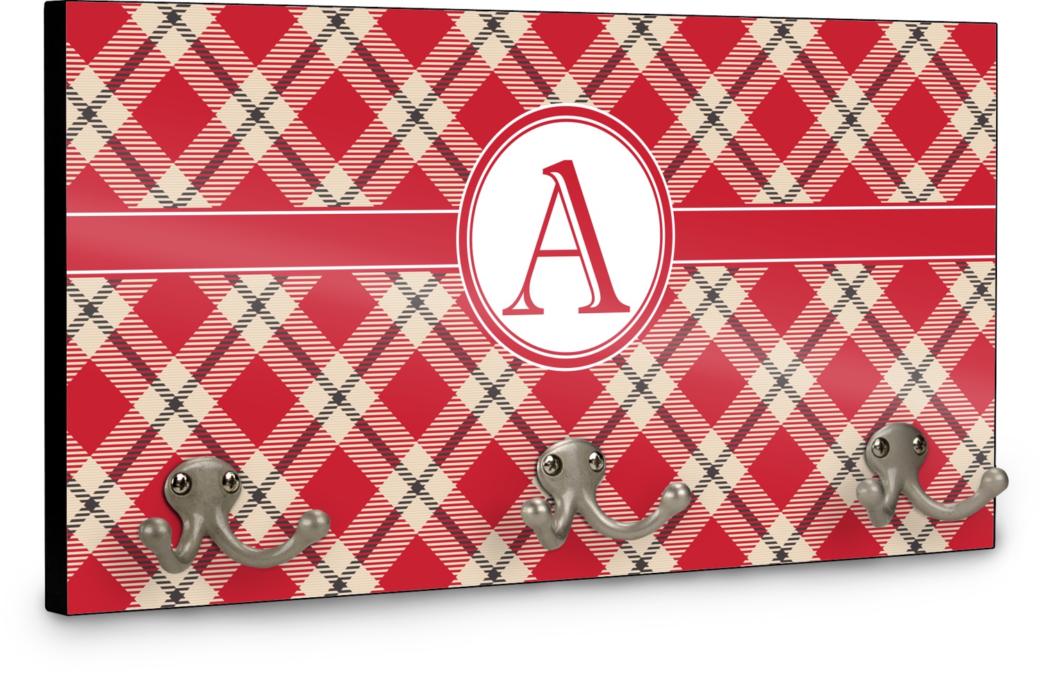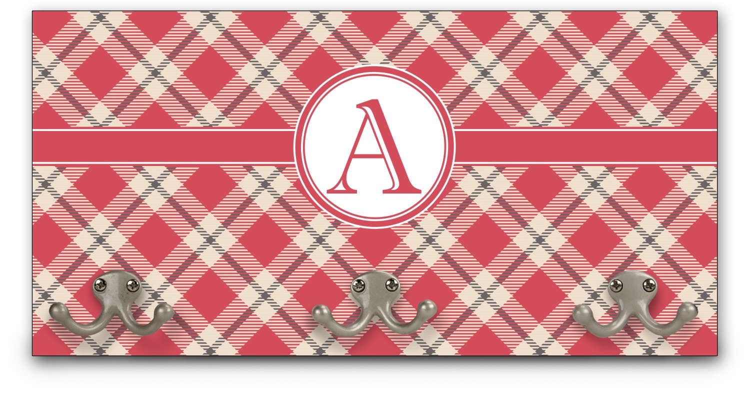 This coat rack is the perfect way to add some personality to your wall or entryway. The board is made of a strong maple that is approximately 16" x 8". The three 2-prong hooks are a sturdy metal that have three screws attaching them to the board. Your design is printed right onto the front of the board while the back and sides are a simple black.