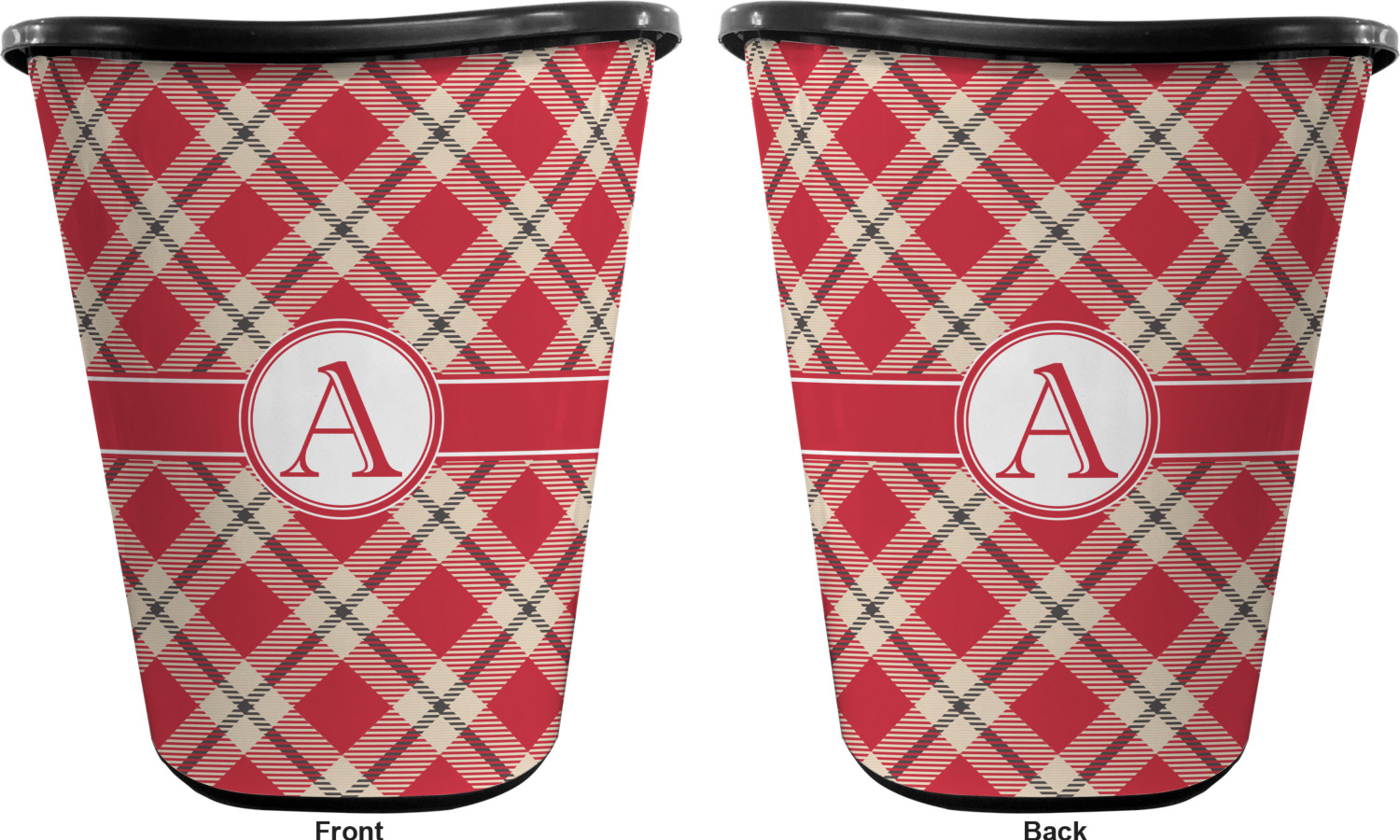 You can choose to purchase these decorative wastebaskets in either a white or a black color that will show on the base and the upper rim. Your customization is printed on a high-gloss, fine-quality vinyl adhesive, and you can choose to either have this adhesive applied to one side only or to both sides. As such, this plastic wastebasket can be single-sided or double-sided, depending on your creative vision. Your customization is printed using durable inks, making the design waterproof and resistant to fading over time.