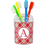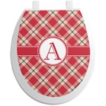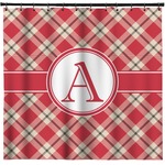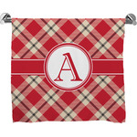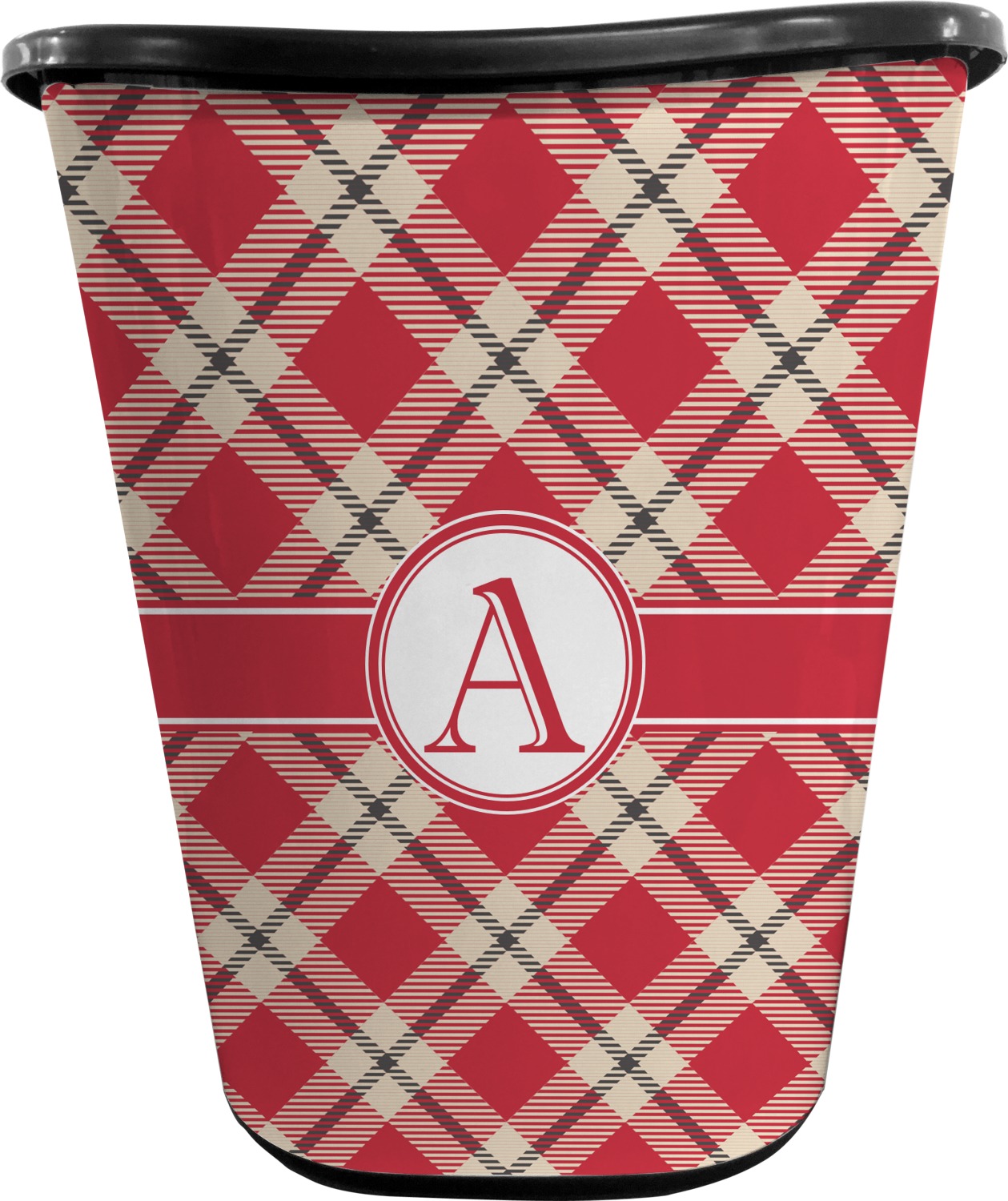 For our design, we chose a simple plaid; we chose red & tan to create a unisex palette and used dark grey for our accent color. We also chose the classic ribbon and round label with an elegant initial for our very simple, yet elegant personalization.