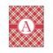 For our design, we chose a simple plaid; we chose red & tan to create a unisex palette and used dark grey for our accent color. We also chose the classic ribbon and round label with an elegant initial for our very simple, yet elegant personalization.