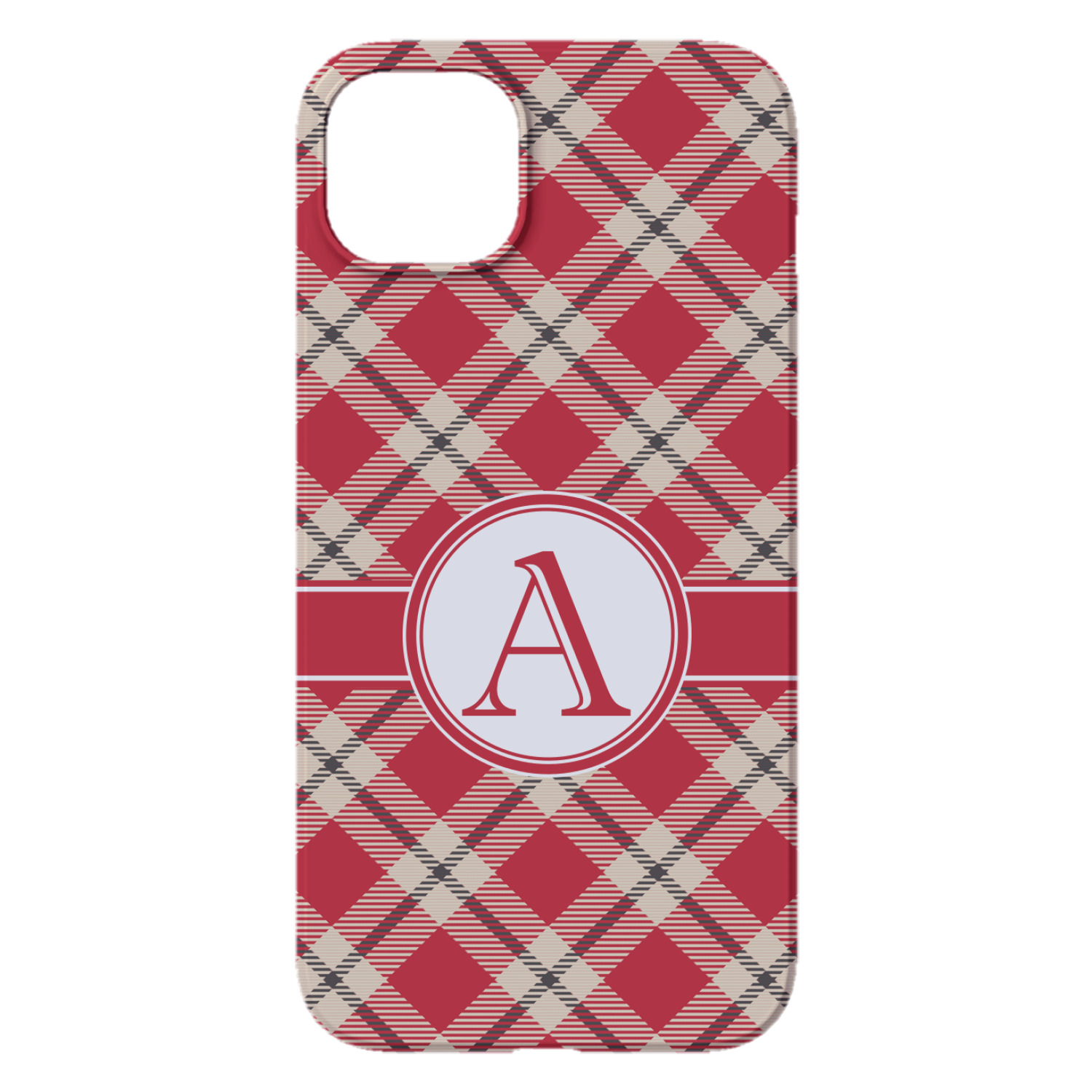 For our design, we chose a simple plaid; we chose red & tan to create a unisex palette and used dark grey for our accent color. We also chose the classic ribbon and round label with an elegant initial for our very simple, yet elegant personalization.