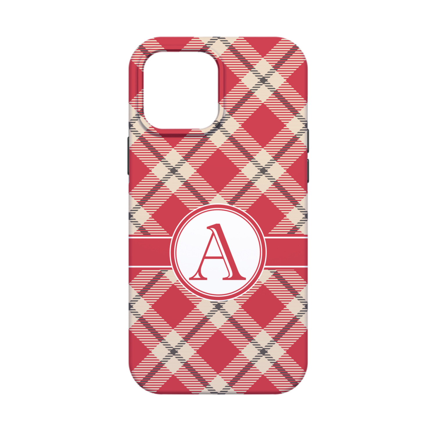 For our design, we chose a simple plaid; we chose red & tan to create a unisex palette and used dark grey for our accent color. We also chose the classic ribbon and round label with an elegant initial for our very simple, yet elegant personalization.