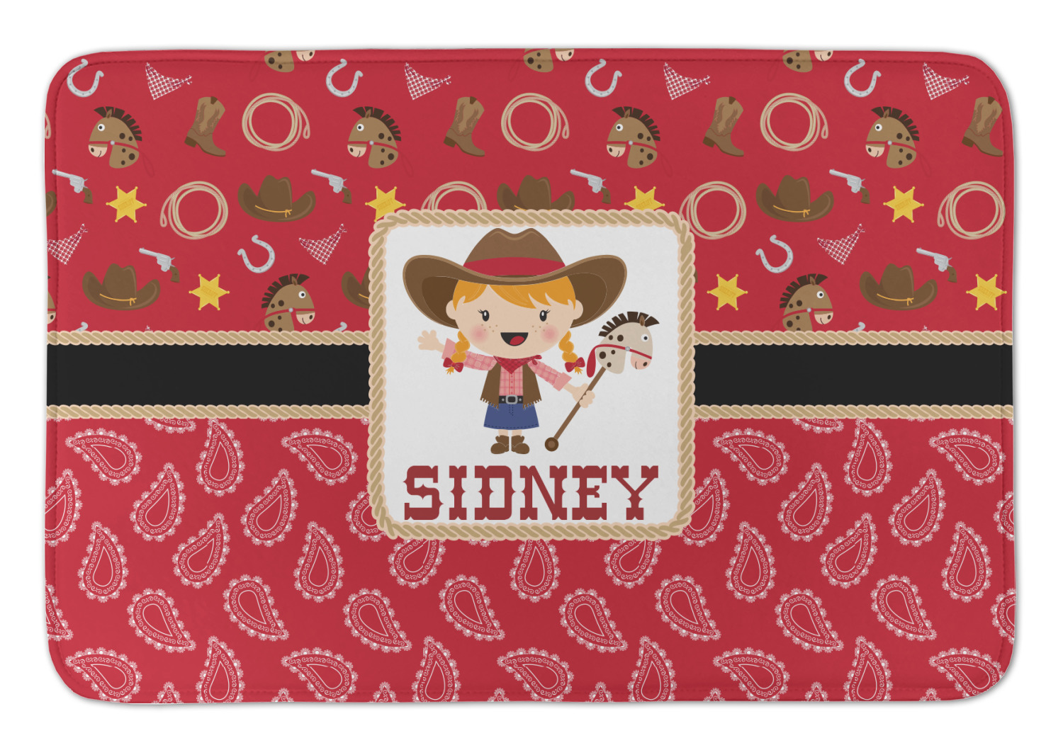 Howdy Y'all! What little country girl wouldn't want to be surrounded by this cute Western theme design? Set on a backdrop of red, the horses, cowboy boots and hats, rope, guns, Sheriff badges, and bandannas set the scene for a hoedown every day. A coordinating red gingham pattern on the bottom tie the entire design together. A wide band of red trimmed in rope add that special touch of design.