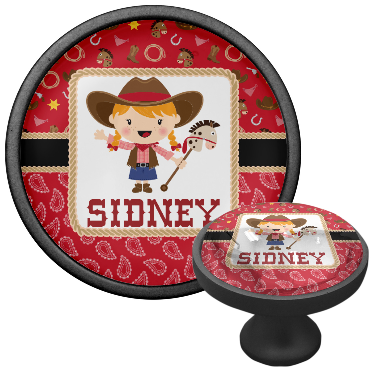 We sell these cabinet pulls in two different colors to better match your room's color scheme. We offer an oil-rubbed bronze base that is black in color, and a satin nickel option, which has a silver color. Your design is displayed across a high gloss vinyl insert that is placed on top of these cabinet handles. We then place a 1 inch thick glass cabochon atop the design, which seals the cabinet knob and makes the colors of your customization stand out. These custom cabinet knobs are approximately 1.3 inches in diameter. Your purchase includes a 1 inch screw that can be used to mount the knob to any cabinet in your home.
