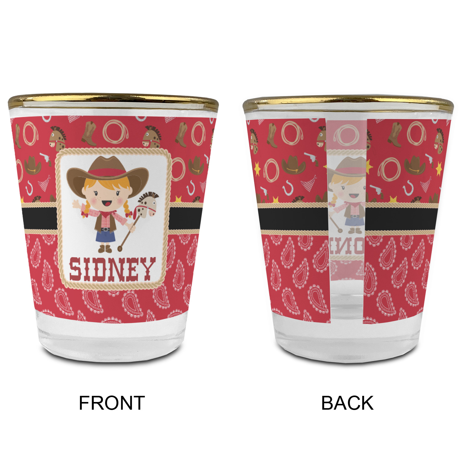 Horseshoe Designs for Glass Shot Glasses - 1.5 oz - with Gold Rim - Single