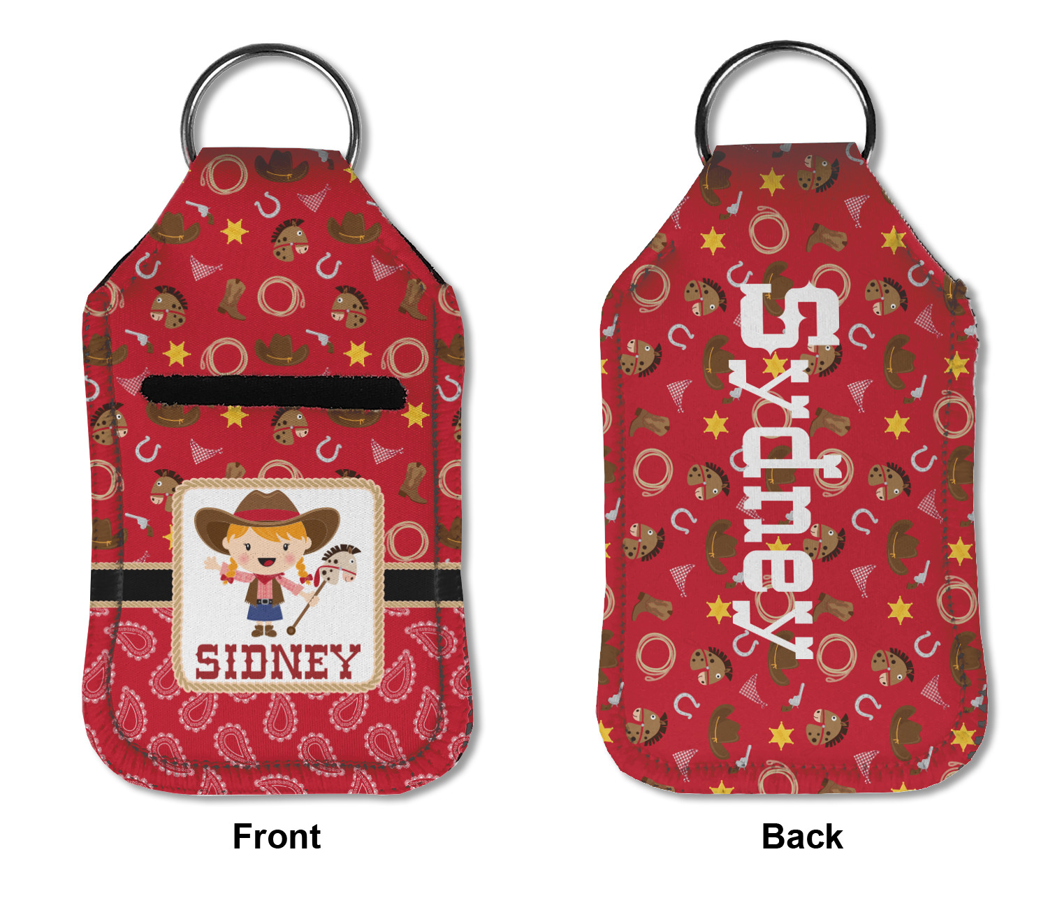 Each hand sanitizer holder comes with its own empty travel-sized, refillable hand sanitizer sure to fit snug in your customized sanitizer case! Our hand sanitizer cases are a durable, yet soft neoprene material sure to last any daily activities or travel agenda. Customize and personalize a hand sanitizer bottle holder with one of our two sizes - small (4.25" x 2.25") or large (5.5" x 2.5"). Each travel sanitizer holder comes with a keyring for attachment on bags, keys, or more!