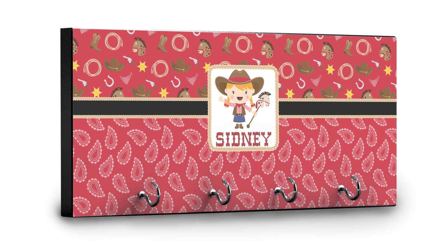 This 11" x 5" key hanger is made of sturdy wood and has four metal hooks lining the bottom. This is the perfect size for a family with several drivers. Not only can you hang keys on it though, but pet leashes and other small items. The board is black on the sides and back and is printed with the design of your choice on the front.