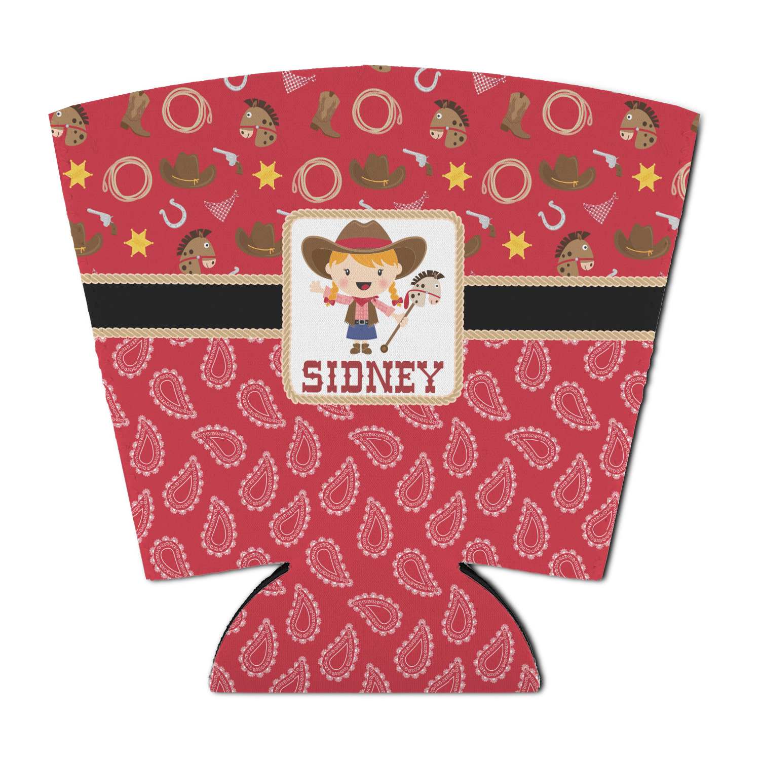 A rope outlined square label showcasing our cute little cowgirl holding her trick pony and lasso has your little one dreaming of riding the range one day.