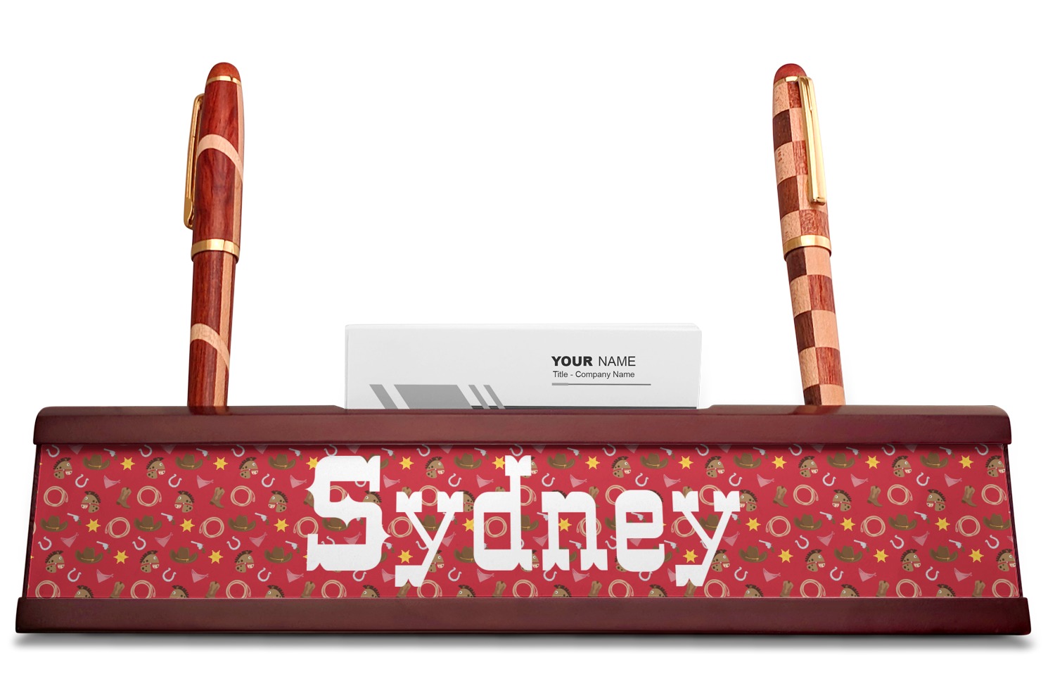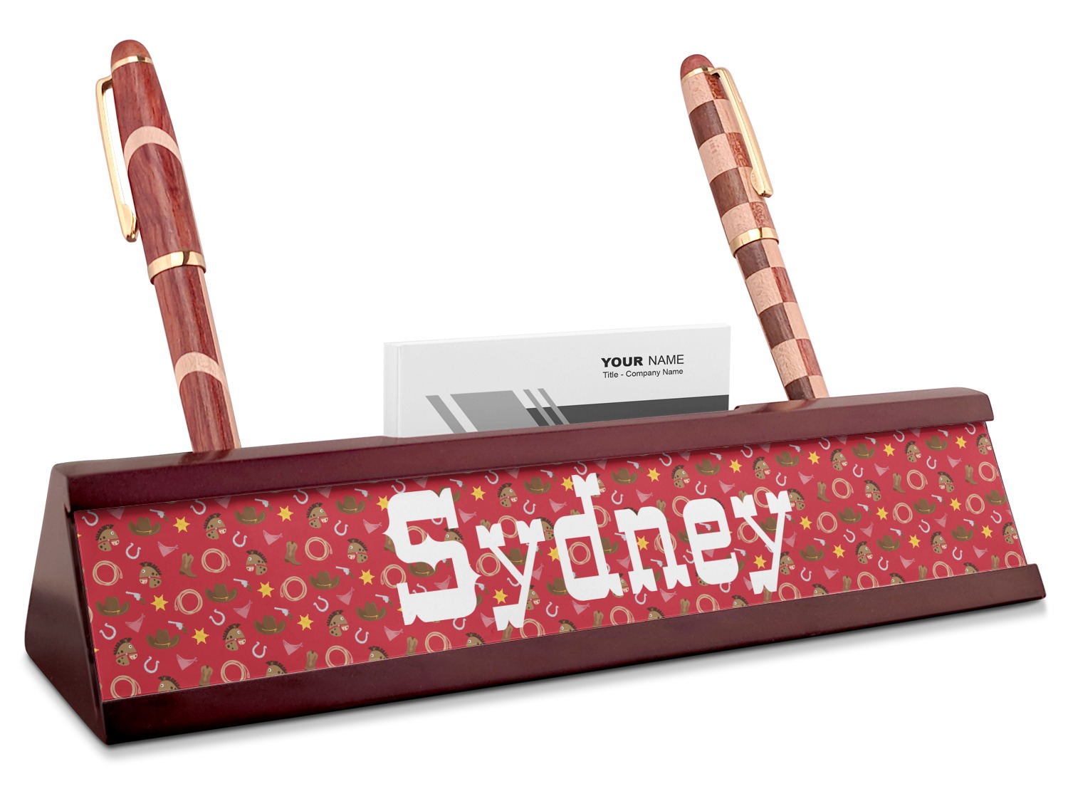 Horseshoe Designs for Red Mahogany Nameplates with Business Card Holder