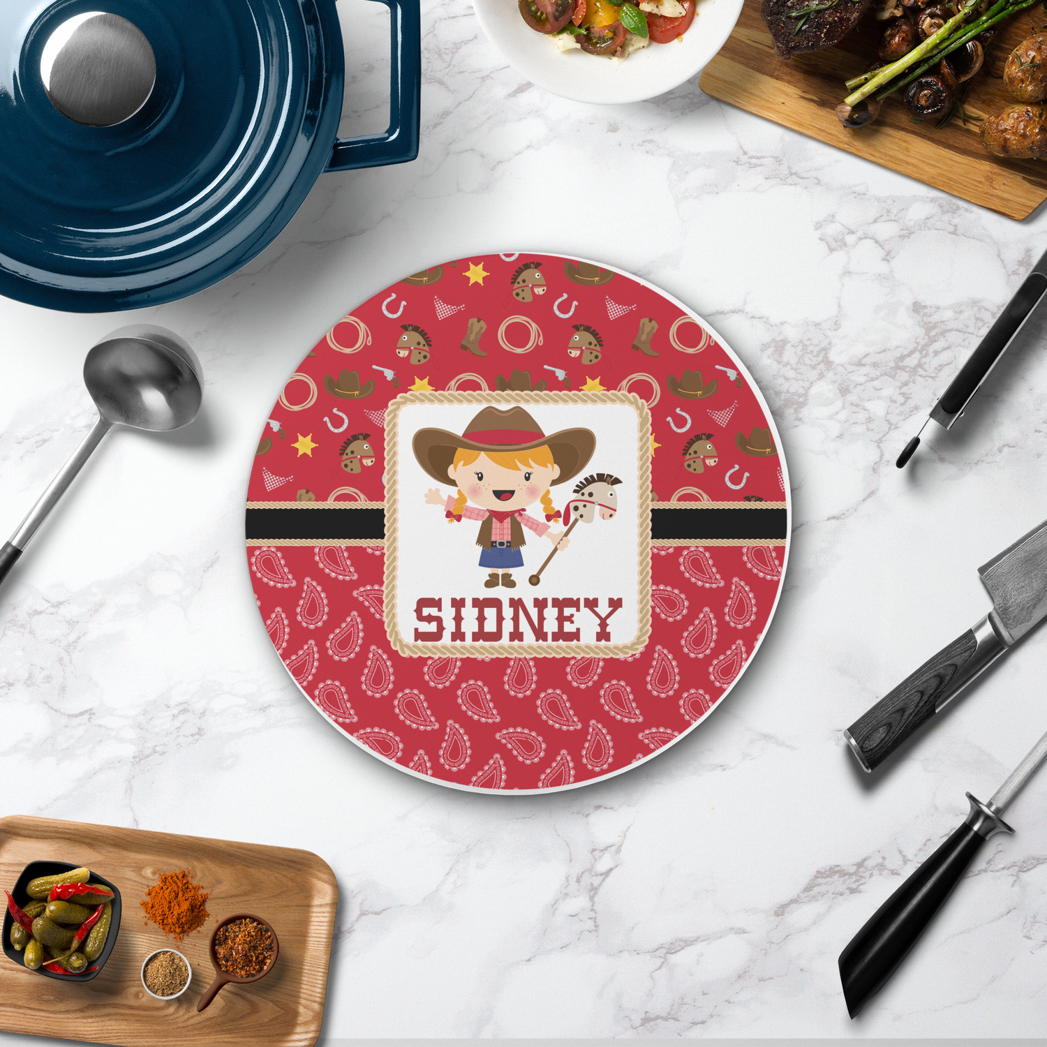 The round trivets can be customized with your own design, your own photo, or your own logo. You can add personalization, like a monogram, family name or initial to your uploaded design / art. You can also customize one of our designs and change the patterns, colors, personalization, fonts etc.